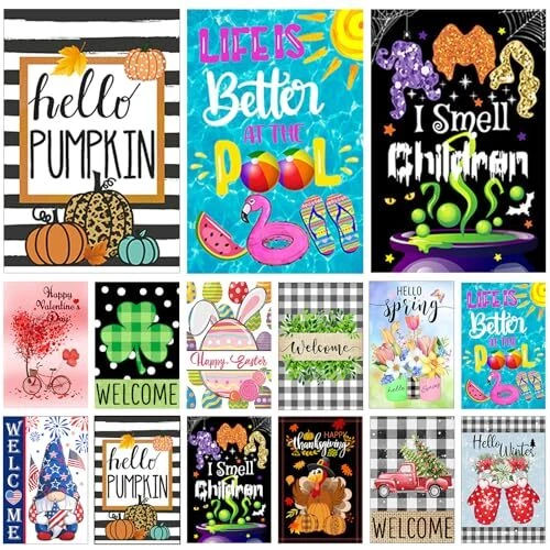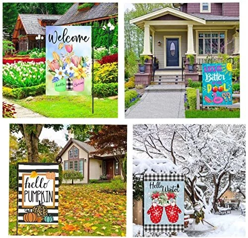 Return Policy Fast Delivery Trusted seller Seasonal Garden Flags Set of 12 Double Sided 12x18 Inch Welcome Holiday Yard Flag, Small Garden Flags for Outside Decoration, Garden Flags for All Seasons Product Description 1. Celebrate Every Season and Holiday: 12 Pack bright garden flags for every important holiday, season and family occasion: Spring Garden Flag, Summer Garden Flag, Welcome Fall Garden Flag, Winter Garden Flag, Happy Valentine’s Day Garden Flag, Welcome St. Patricks Garden Flag, Easter Garden Flag, Patriotic Garden Flag, Welcome Garden Flag, Halloween Garden Flag, Merry Christmas Garden Flag. 2. Double Sided: Vibrant, colorful and adorable design, double sided / 3 Layers of fabric, both sides are readable and silver fabric in the middle prevents transparency. Premium quality material, durable, sturdy, weather resistant, fade resistant and made to last. 3. Easy to Install: These yard flags are 12.5 x 18 inch, with about 2 inch opening, and fit all standard sized garden flag pole stand (stand not included), packed in a zipper storage bag, easy to store. 4. Super Useful: Dress up your home yard, lawn or garden with these beautiful outdoor garden flags, celebrate with your loved ones, and be the envy of the neighborhood. 5. Premium Quality Printing: One of the best parts about our outdoor seasonal flags designs is how bright and cheerful each and every print is. Bright up your outdoor space with our Premium Double-Sided Garden Flags. Personalize your adorable garden with these unique designed seasonal flags. Shipping Returns Payment Shipping Shipping is FREE to all addresses other than APO/PO boxes in the lower 48 states. All our stock ships from US-based warehouses. Shipped via USPS or UPS (depending on location and package weight) Unless stated otherwise, all orders will ship within 24-72 hours of your payment being processed. Check our feedback to see the great reviews of FAST shipping we offer. Returns Seller does not accept returns Payment We currently accept payment via eBay managed payments only. Once payment is cleared, we will dispatch your shipment within 1-3 business days. Please refer to the "Shipping" tab for more information regarding shipping speed to your destination.