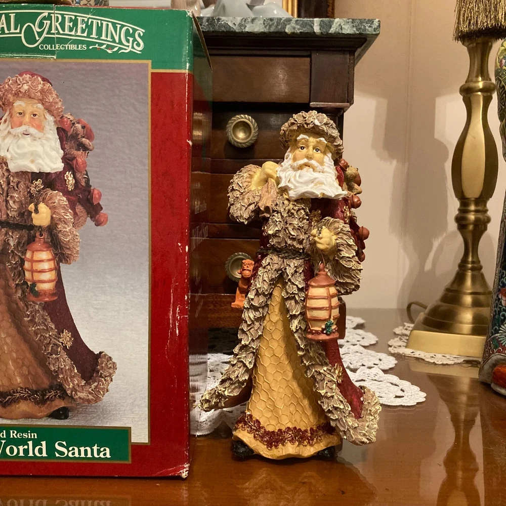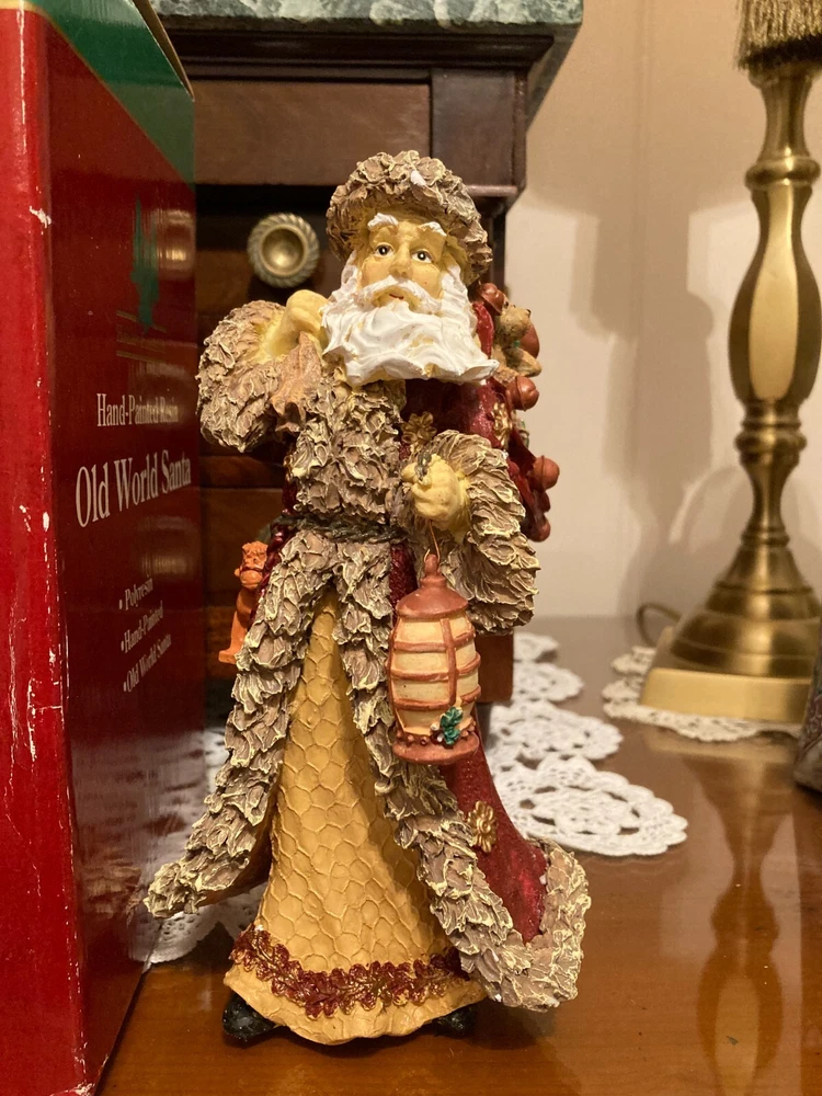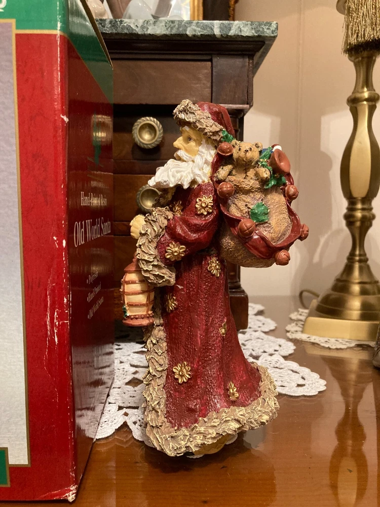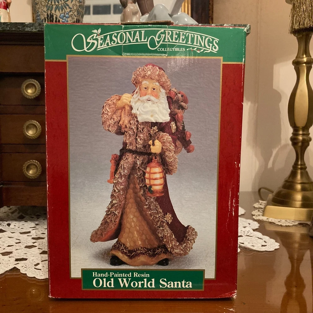 Seasonal Greetings Old World Santa hand painted german vintage nos box figurine