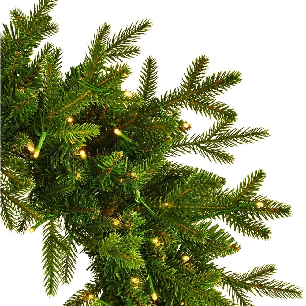Seasonal LLC 24" Dandan Pine Wreath - 20 Inch diameter, pre-strung with 150 warm white LED lights, plug-in with 6 hours on/18 hours off timer, 375 branch tips. For use indoor or covered outdoor location. LED lights are energy efficient and long lasting. Fire resistant and non allergenic. Has an increased volume of sparkling lights, much more than typically found on wreaths of similar size. The Dandan Pine shines with a glistening glow. Mixed tip design featuring lifelike PE molded branches that create a very realistic holiday decoration. Branches are pre-strung with 150 warm white LED lights that are energy efficient and long lasting. Wreath is plug-in and includes 6 hours on/18 hours off timed operation. Can be displayed on a door, wall or window in indoor or covered outdoor setting. *****This item comes packed in original manufacturer packaging for shipping and requires time to properly arrange, adjust and spread apart to the desired shape and volume. Branches may need to be separated and will require around an hour of adjustments after shipping. *****