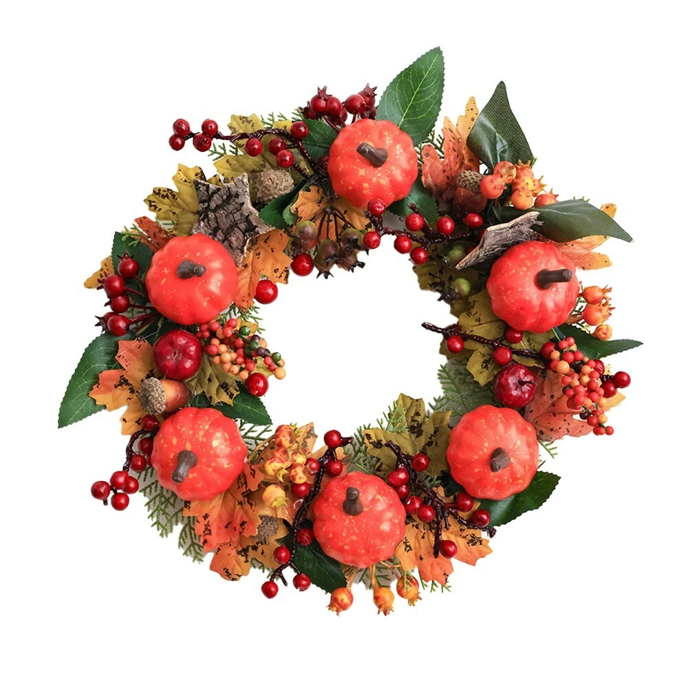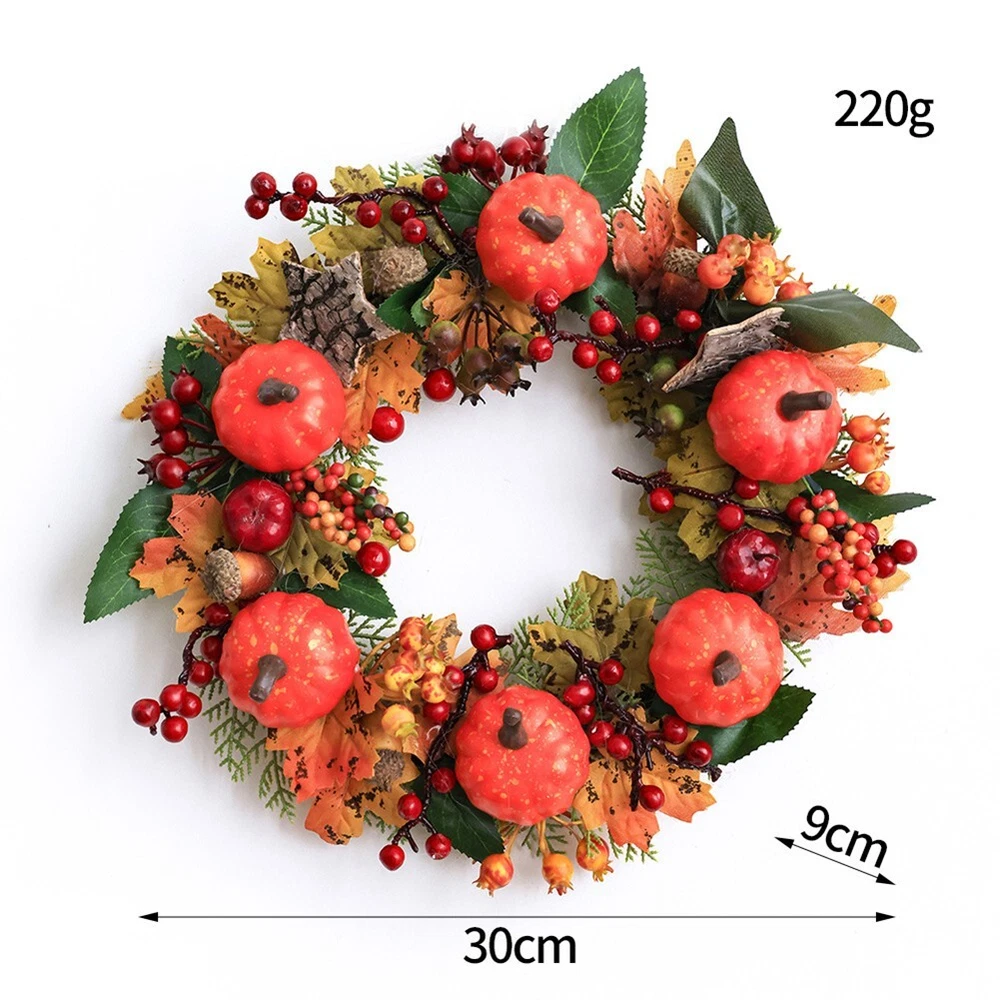 Seasonal Maple Leaf Wreath with Pumpkins for Elegant Autumn Home Decoration