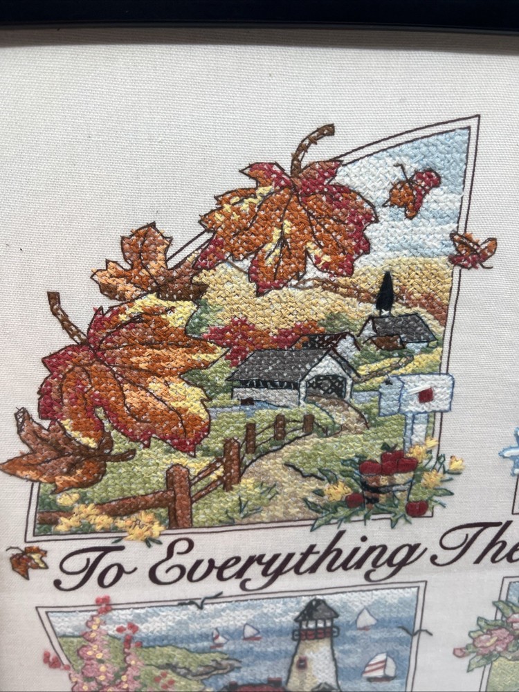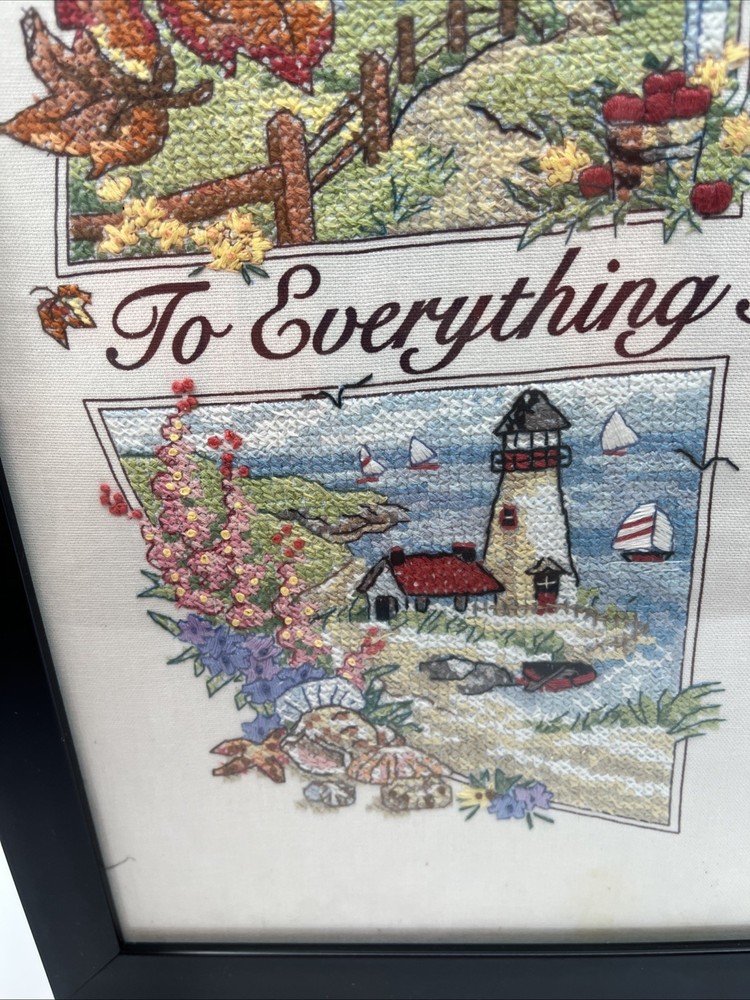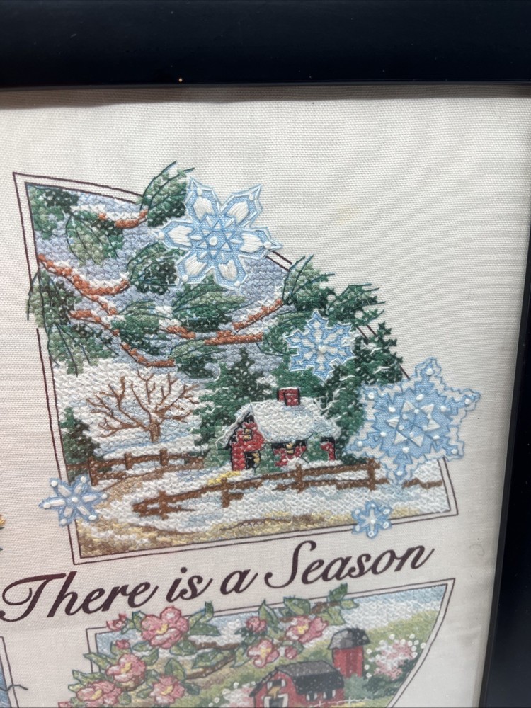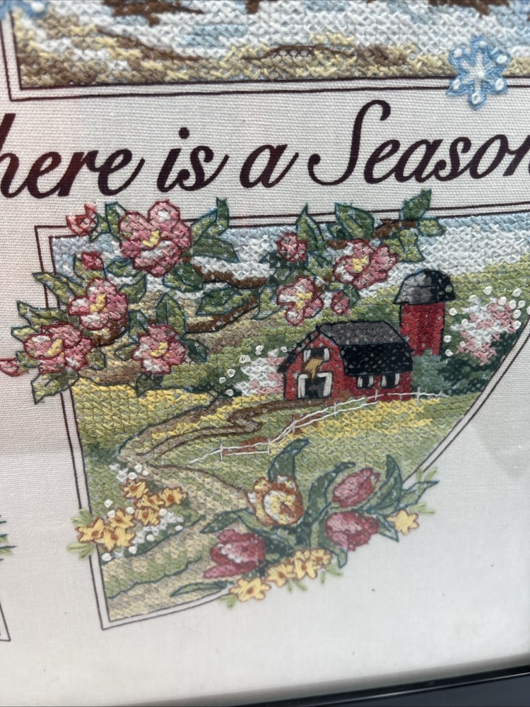 Seasonal Needlepoint To Everything A Season Finished Framed Art 17”x17”