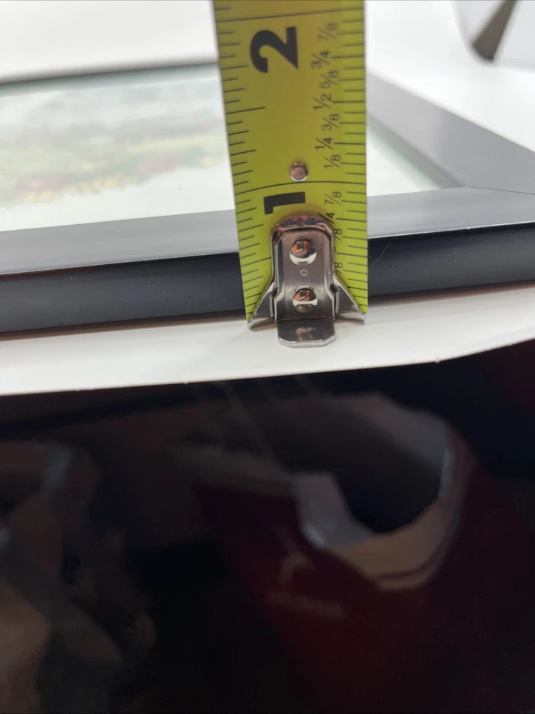 There is some marks on the frame. Please see photos for condition and measurements. Please let us know if you have any questions. We do offer returns and refunds. If you are not satisfied with your purchase, let us know and we will try to fix it.
