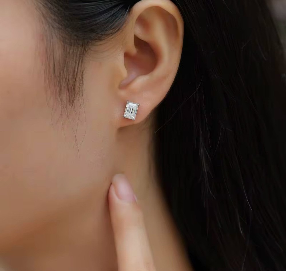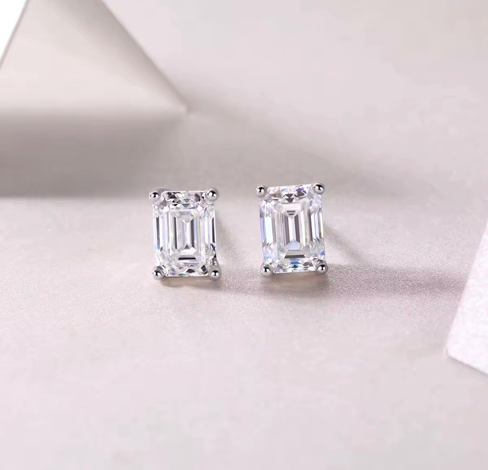 Comes woth box ✅ 💯 genuine Come with bill ✅ These Divine white gold stud earrings feature 1.5 carat total weight of lab-created emerald cut diamonds in E colour and VVS clarity. The earrings are hallmarked and made in the United Kingdom. Perfect for those looking for elegant and high-quality jewellery.