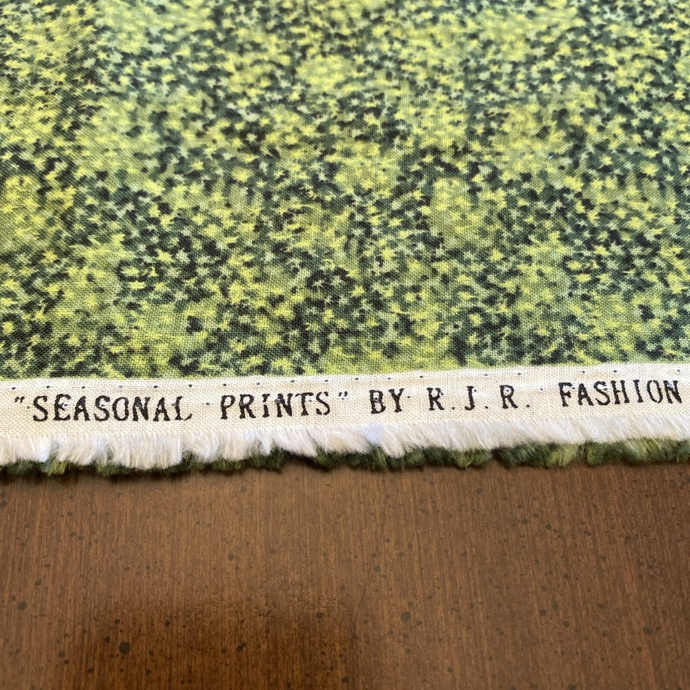 Multcolored Greens Seasonal Prints” by RJR FABRICS 100% Cotton Fabric 1 Yd 34” the fabric has acute design and closer look we can’t tell if it stars if if it’s tiny leaves. Would make a beautiful accent to your quilting project. Winner pays 599 shipping. Tub 4/24.