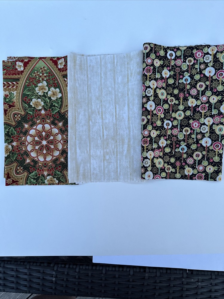 Seasonal delights, Scrap Of The Month by Keepsake Quilting 3 yards (12) 9 1/4" x 44/45. NEW!!! Please see photos for condition and colors. I do have many block of the month packages all beautiful. I have to downsize my stash do to my health. I will be posting many many items I have quilted for over 45 years. I will combine shipping. Thank you for looking. T 121