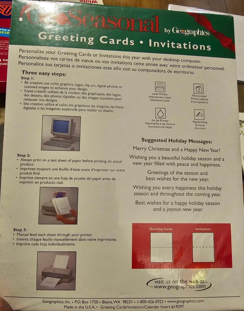 Seasonal Stationery, Greeting Cards And Envelopes by Geographics. Set of 12 cards and envelopes, includes instructions for printer. Made in the USA. Inv. Bkt ๐Ÿ‘€ Yes, I offer combined shipping for multiple purchases! Be sure to check out all my listings.