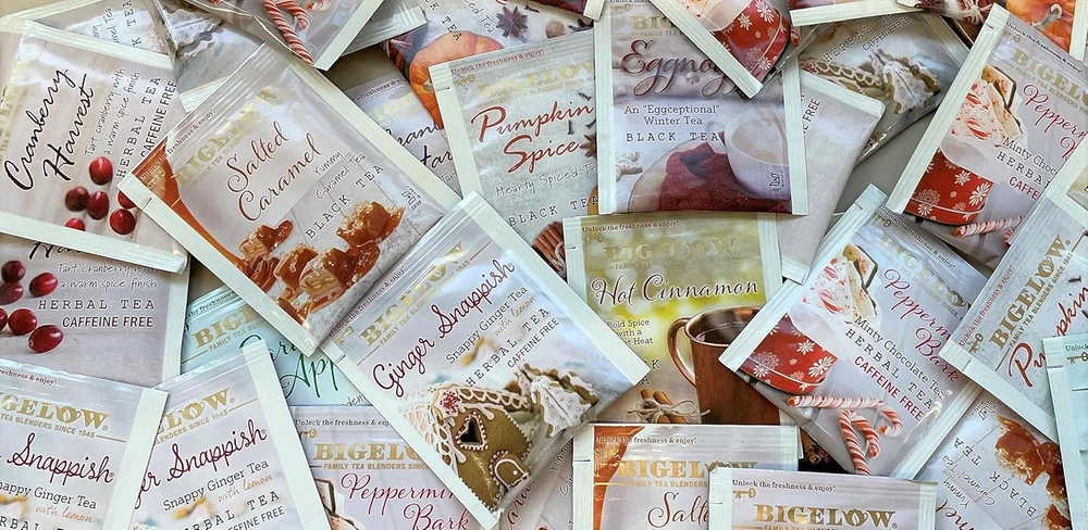 For Every Occasion: This well-rounded variety pack includes Cranberry Harvest, Hot cinnamon, Peppermint Bark, Ginger Snappish, Pumpkin Spice, and Salted Caramel for holiday tea at its finest Enjoy hot or iced Individually Wrapped: Bigelow Tea always come individually wrapped in foil pouches for peak flavor, freshness and aroma to enjoy everywhere you go. Gluten-free, calorie-free, and Kosher Certified Try Every Flavor: There's a tea for morning, noon, and night time relaxation. Try our English Breakfast, Vanilla Chai, antioxidant Green Tea, decaffeinated teas, organic teas and a variety of our herbal tea bags Blended and Packaged in the USA: In 1945 Ruth Campbell Bigelow created our first tea, Constant Comment, a strong, flavorful black tea blended with aromatic orange peel and sweet warming spices. Today, Bigelow is still 100 percent Family Owned Uncompromised Quality: Since 1945, Bigelow Tea has been a leader in premium tea and proud to be a Certified B Corporation, meeting the highest verified standards of social and environmental performance, transparency and accountability Seasonal teas are a great way to celebrate the flavors and aromas of the season. What makes bigelow’s seasonal teas so special is that each one blends the holidays’ most indulgent flavors into an exceptional cup of holiday cheer -- without the calories! This case of 6 boxes includes 1 box Each of: peppermint Bark herbal, ginger snappish herbal, Cranberry Harvest herbal, hot Cinnamon black, pumpkin Spice black, and Salted Caramel back teas. Total of 108 tea bags.
