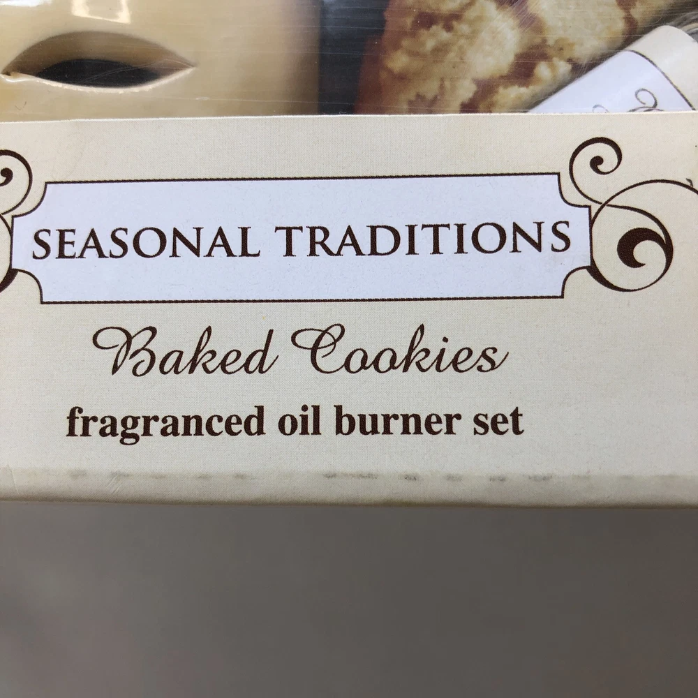 Seasonal Traditions Baked Cookie Scent Aromatherapy Burner Candle Oil NEW Includes: Ceramic Burner, 2 Tea Light Candles, 1 Fragrance Oil