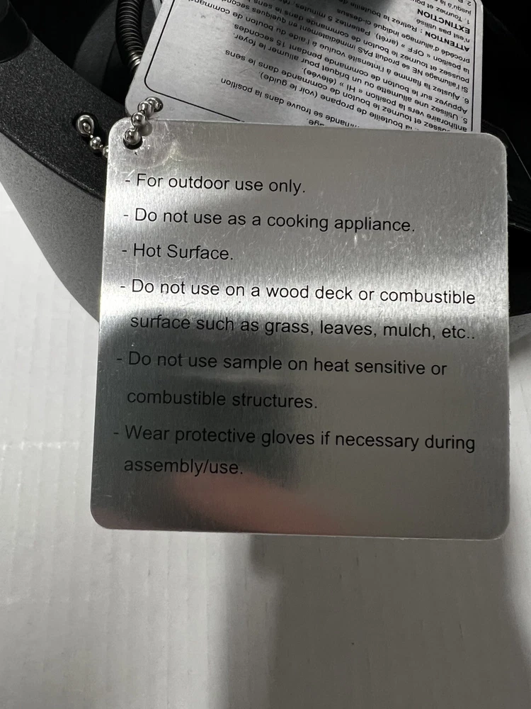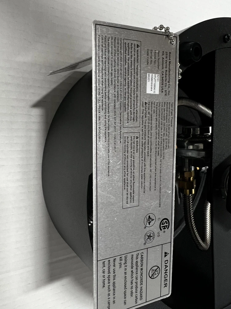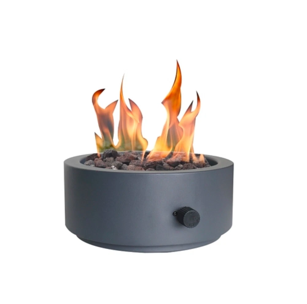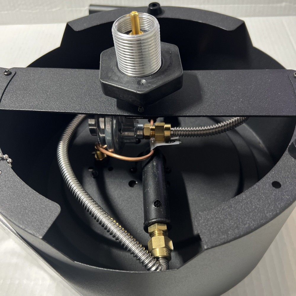 ITEM IS NEW, OUT OF THE BOX ITEM DOES NOT COME WITH ORIGINAL BOX FEATURES : Finish: Matte Black Overall Depth 10" Shape: Round Material: Steel Stainless SteelZinc and Plastic Overall Width: 10" Overall Height: 4.17" Color: Black Gas Type: Propane Ignition Type: Match Heating Area: 15 sq. ft. Nomenclature: 52101 PIT FIRE TABLETOP Burning Depth: .95" Burning Height: 8" Burning Width: 8" --- Secured & tracked shipping