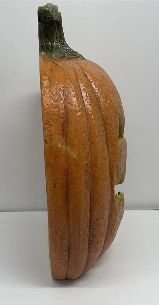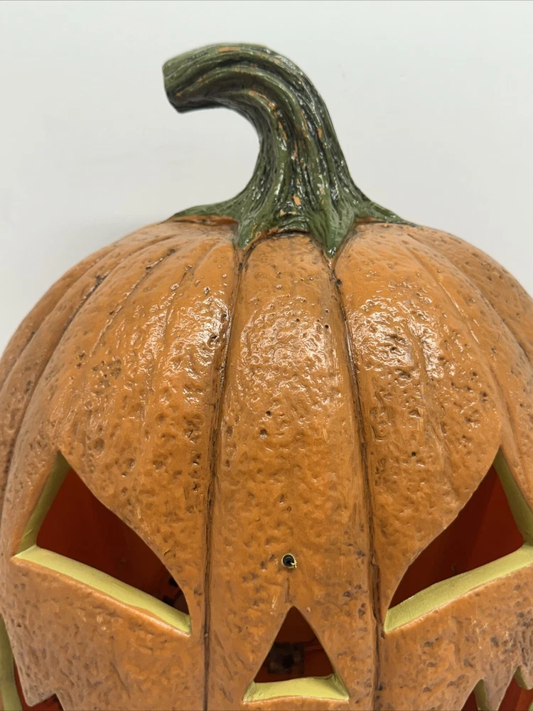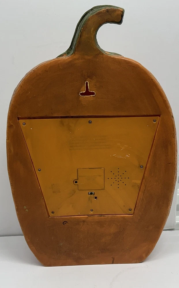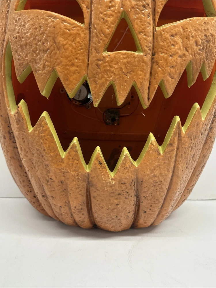 Missing translucent cover for inside but still works great. Get ready for Halloween with this amazing 24" blow mold Jack O'Lantern pumpkin from Seasonal Visions. The bright orange color and plastic material give it an authentic look that will make your house stand out on Halloween night. It also features animated sounds that will add to the spookiness of the holiday. This collectible item was manufactured in the 1990s in China and is perfect for Halloween enthusiasts. Whether you're decorating for a party or just want to add some Halloween spirit to your home, this item is a must-have. Add it to your collection of other holiday collectibles and make your Halloween even more special.