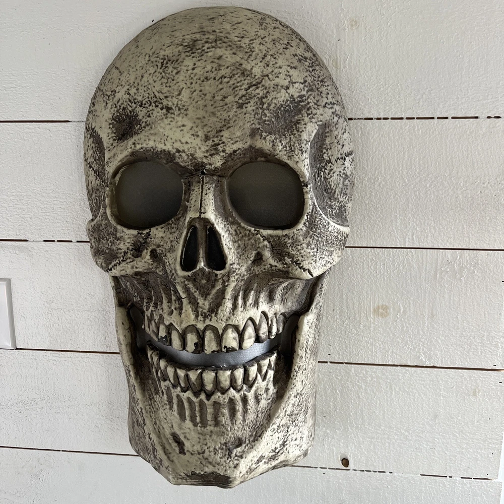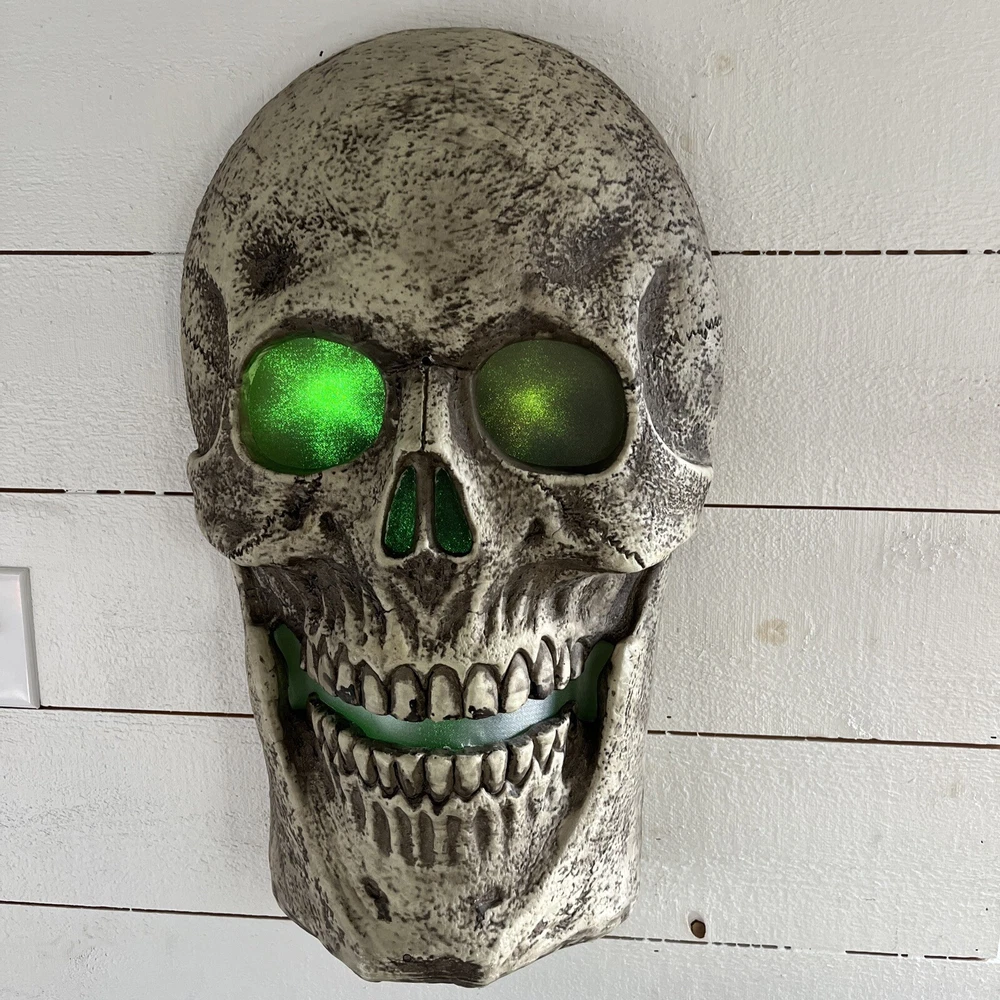 Seasonal Visions Spooky sounds animated color changing Halloween skull blowmold. Stands on ground or hangs on wall or door.