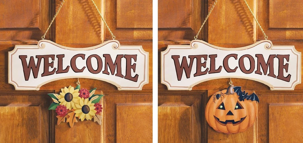 WELCOME Front Door Porch Sign W 9 Changeable Seasonal & Holiday Danglers 12"L Seasonal WELCOME Front Door Wooden Plaque with 9 Interchangeable Danglers 12"L Click image to enlarge Description Seasonal WELCOME Front Door Wooden Plaque with 9 Interchangeable Danglers 12"L. Enjoy a festive welcome for every season with this unique Welcome door sign with interchangeable seasonal and holiday icons. All year long you can WELCOME friends and family with the same sign but change out the dangler at the bottom to match the season or holiday! Details: Set of 10-Pieces 1 "WELCOME" Sign 4 Seasonal Danglers Spring Watering Can Summer Beach Scene Autumn Leaves Winter Snowmen 5 Holiday Inspired Danglers St. Patrick's Day Shamrock Basket Of Eggs American Flag For 4th of July Jack-O'-Lantern Pumpkin For Halloween Wreath For Christmas "WELCOME" Sign Measures 11-1/2"Long x 4-1/4"High Each Dangler Measures Approx 4-1/2"Long x 4"High Danglers Hang From Hook On Bottom Of Sign Sign Includes Chain Attached To Top For Easy Hanging ~Buy more than one item at the same time from our eBay store and save in shipping costs!~ (If buying different items, just put them all in your cart before paying, to get the combined shipping discount!) Shipping We use UPS SurePost, UPS, USPS and FedEx SmartPost to deliver our products to your home, depending on which method is more efficient for your order. We use suppliers for some of our orders and our suppliers will choose the service that is used for these orders. PLEASE MAKE SURE YOUR ADDRESS CAN BE VERIFIED BY USPS. Please allow 7-10 days for the item to reach your home. We cannot be responsible for items shipped to incorrect or incomplete addresses, which may result in the cancellation of your order. YES, we do combine shipping! The highest shipping cost item ships at regular price, and each additional item ships at $2.00 more in additional shipping charges. If you are buying several different items from our store, put them all into your cart before paying to get the combined shipping discount. Terms of Sale Unless otherwise noted, we accept returns up to 30 Days after your purchase, through the eBay Returns System. Please use eBay to contact us if there is any problems or issues with your order. In some cases, we order the item purchased from one of our suppliers, and it is shipped directly from our supplier to the customer. There are times when an item unexpectedly becomes unavailable from our supplier. We do our best to check on all of the items availability several timea a day. If an item is unexpectedly unavailable, we will issue a refund immediately. Contact Us Please use the message center in eBay to contact us. We check our message box in eBay several times a day. If you have any questions or concerns with your order, please feel free to contact us. We care very much about our customers being 100% happy with their purchases. We would very much appreciate you letting us resolve any issues you may have with your order by contacting us first, before taking any other unnecessary actions. Pictures sell! Auctiva offers Free Image Hosting and Editing. 300+ Listing Templates! Auctiva gets you noticed! The complete eBay Selling Solution. Track Page Views With Auctiva's Counter