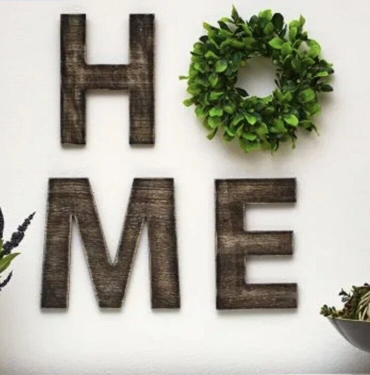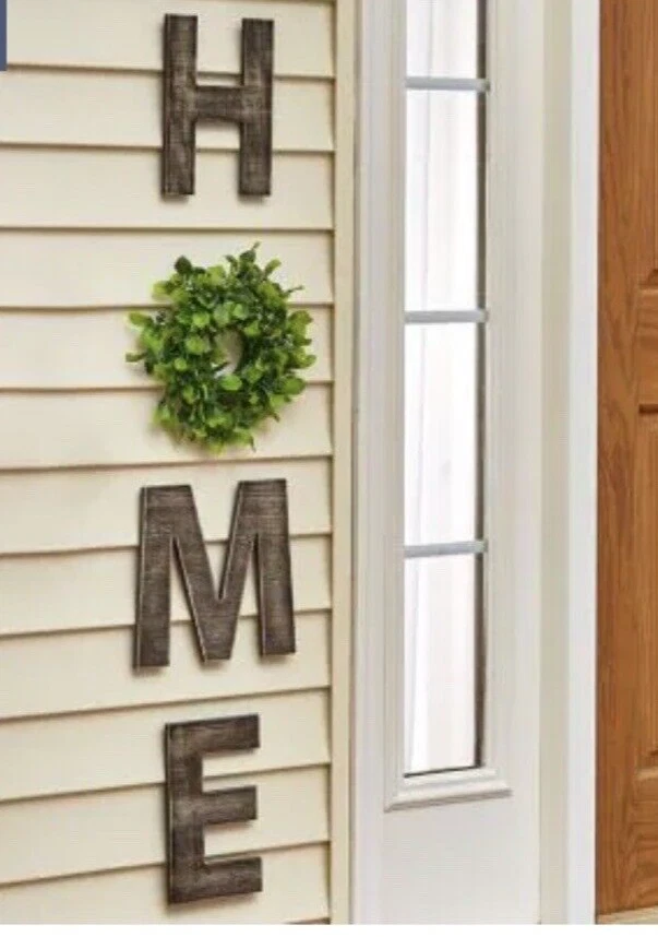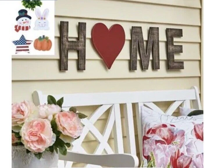 Add a touch of rustic charm to your home decor with this seasonal wall decor made of high-quality wood. The stylish brown color, along with its unique design, makes it a perfect addition to any room. This wall hanger is also versatile, making it suitable for all occasions and can easily be made into a porch leaner. The product comes with six changeable pieces for the O, making it a customizable decoration piece. The material is durable and long-lasting, ensuring that it will stay in excellent condition for years. Ideal for house decoration for indoors or out, this wood home sign is a must-have for anyone who loves rustic decor. Measurements: Approx. 8" x 9", each letter and icon Set includes: - H - M - E - Heart - Pumpkin - Rabbit - Snowman - Americana star - Wreath