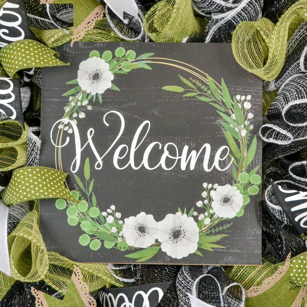 This welcome wreath will make a wonderful addition to your indoor or outdoor home décor. Use it for your own decor, or a gift for someone special. Thank you so much for visiting my shop and for considering pieces that allow my passion to make your home even more beautiful. Please message me with any questions before purchasing. This wreath measures approximately 24 inches round and approximately 5" deep This wreath is ready to ship and is made with black, jute and white mesh and accented with coordinating ribbons to showcase the wooden Welcome sign in the center (that is removable) Want something more custom or have questions? Send me a message...the backbone of my business is custom creations! Purchase with confidence in a seller with excellent reviews and over 15,000 sales between all selling venues. Indoor and outdoor pieces but my wreaths do appreciate a little shelter from the elements to stay in pristine condition.