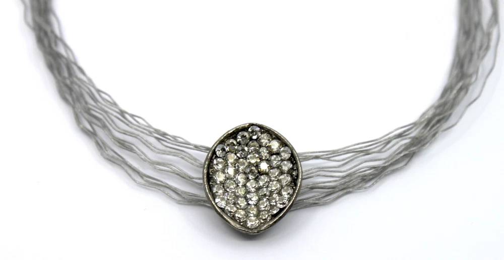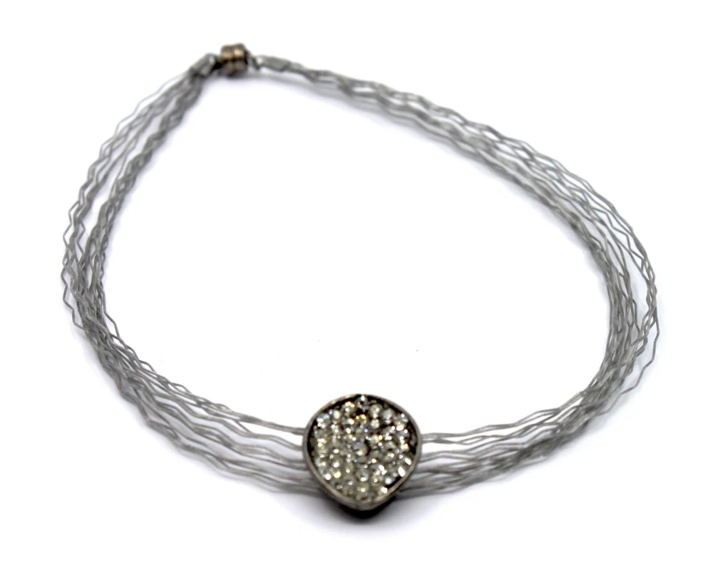Seasonal Whispers Handmade Love layered Choker Necklace Clear Silver #8249 Description Silver and Crystals / Silver Crinkle Wire Brand new never worn Pendant Measures 1 x 0.75" inch Necklace size : 14.5"in long magnetic closer International Shipping We can ship almost anywhere in the world! Please contact us prior to bidding for accurate shipping costs. We cannot ship jewelry to certain countries due to import restrictions so please check your country's import regulations on precious stones and metals. Returns Returns will be accepted -14 days return policy . Please contact us with any questions or concerns before making this purchase. Authenticity We guarantees that all products sold by us are 100% authentic brand name We do not sell imitations of any sort and only carry genuine Payment must be made within 3 days of the end of the auction Please feel free to contact us concerning any questions . About Us We've been in the high-end jewelry trade for more than 30 years in our Midtown Manhattan location and have developed a reputation as an industry leader in brand name and estate jewelry. Other We reserve the right to re-list items not paid for after 7 days. We reserve the right to NOT accept payments from Unconfirmed Pay-Pal Addresses. Do NOT Confirm your Bid unless you are willing to pay that much for the piece. We would not carry any responsibilities for any possible taxes or duties that might occur in your local countries. box#01020