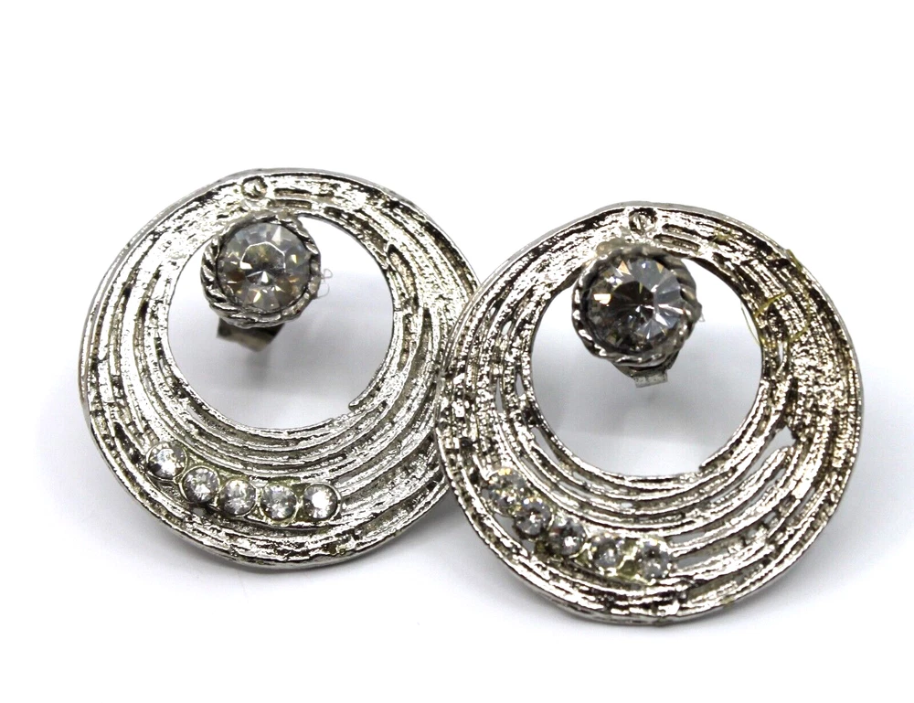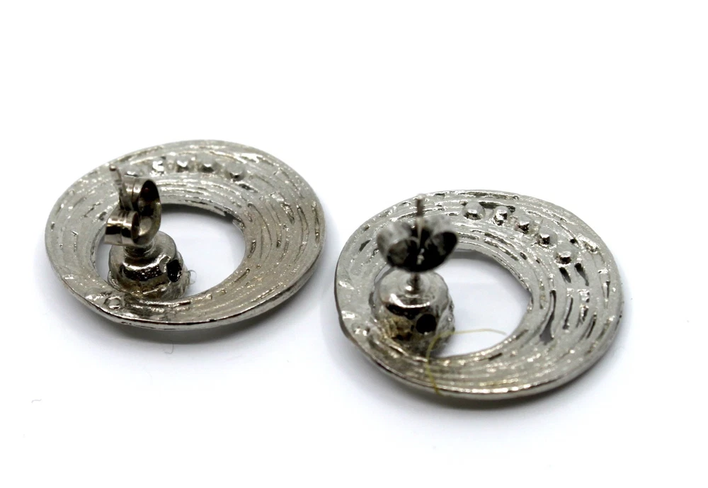 Seasonal Whispers Silver Circle Stud Earrings Swarovski Crystals #2