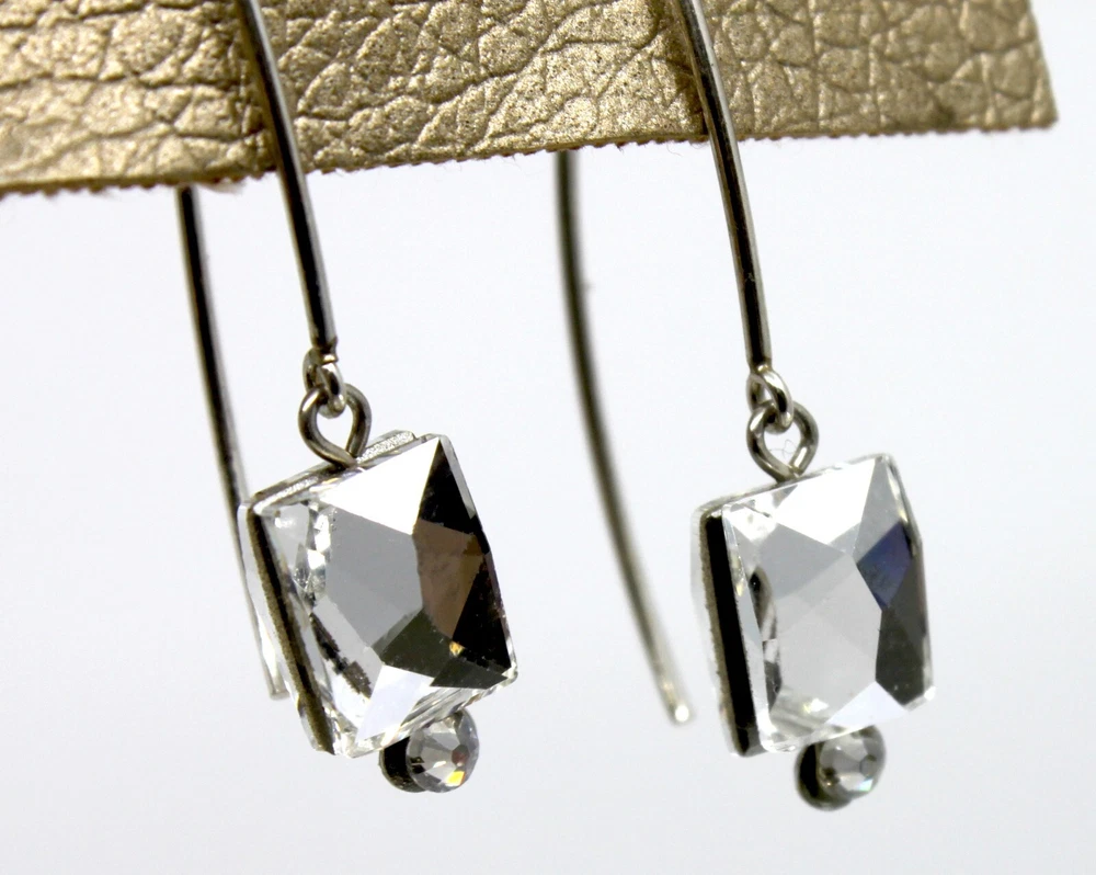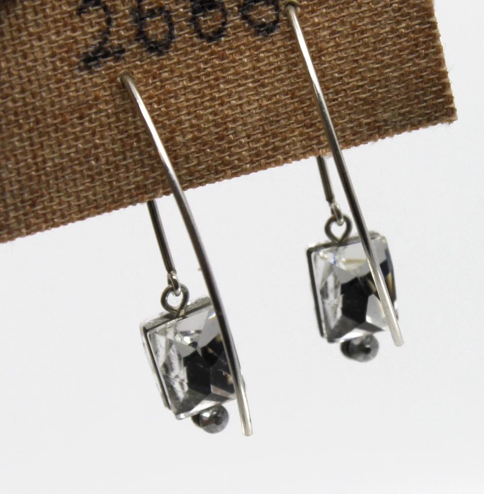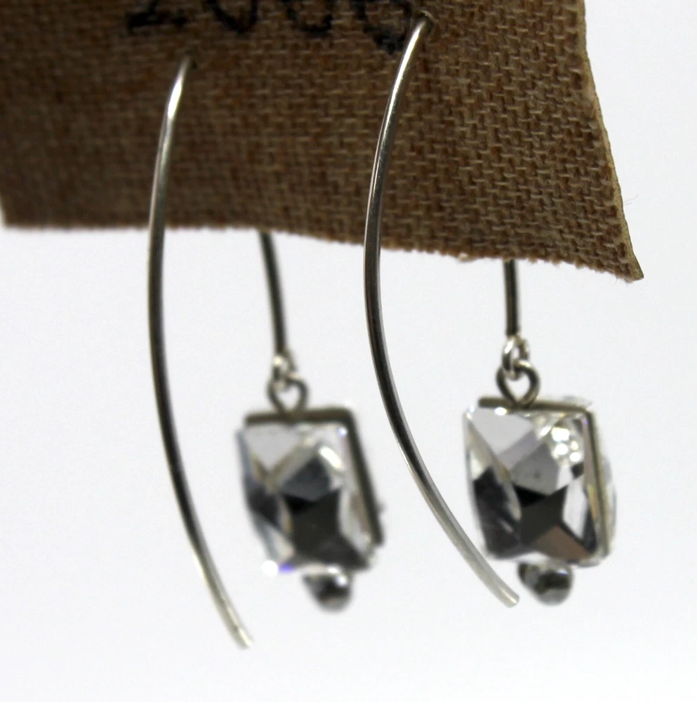 Seasonal Whispers Silver Threader Earrings Swarovski Crystals #2 Silver Swarovski crystals form a graceful dangle Silver tone Total drop is 1.5"in Stainless steel base metal Hand made in New York, New York Tagged by Seasonal Whispers #01020
