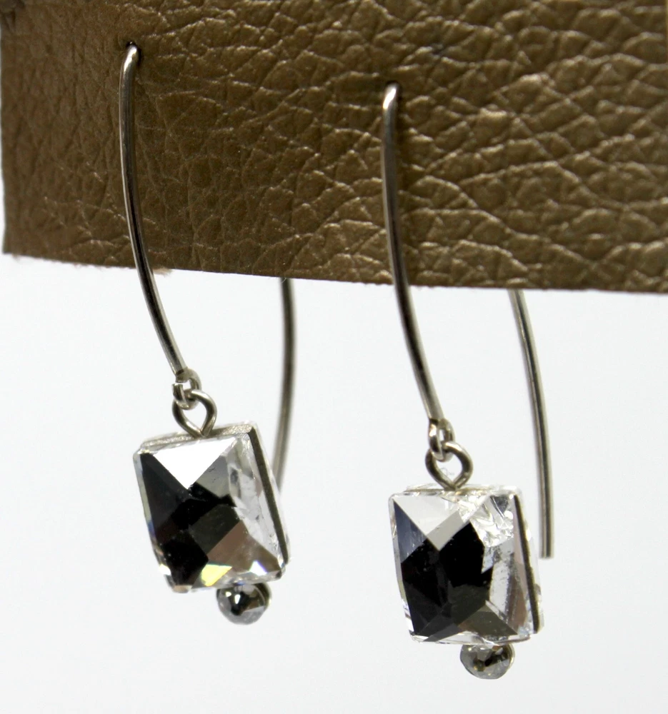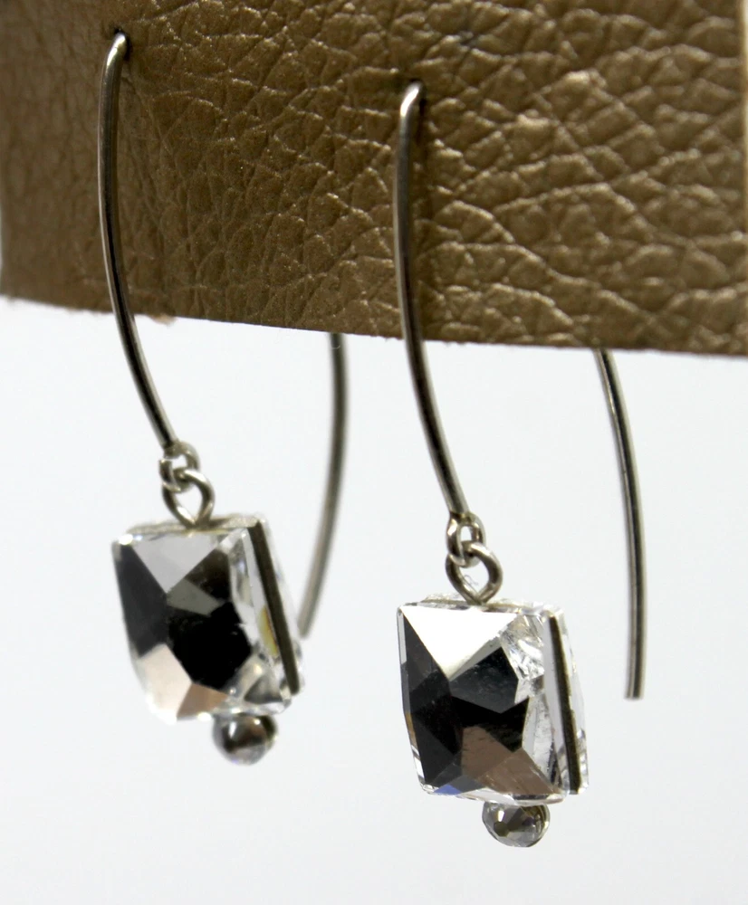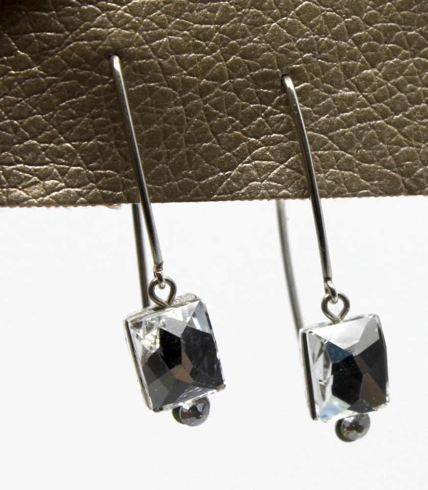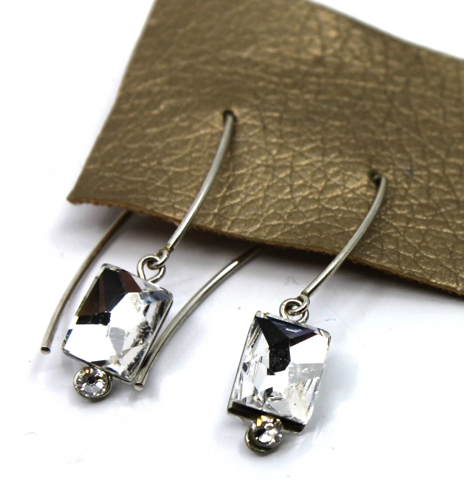 Seasonal Whispers Silver Threader Earrings Swarovski Crystals #2 Silver Swarovski crystals form a graceful dangle Silver tone Total drop is 1.5"in Stainless steel base metal Hand made in New York, New York Tagged by Seasonal Whispers #01020