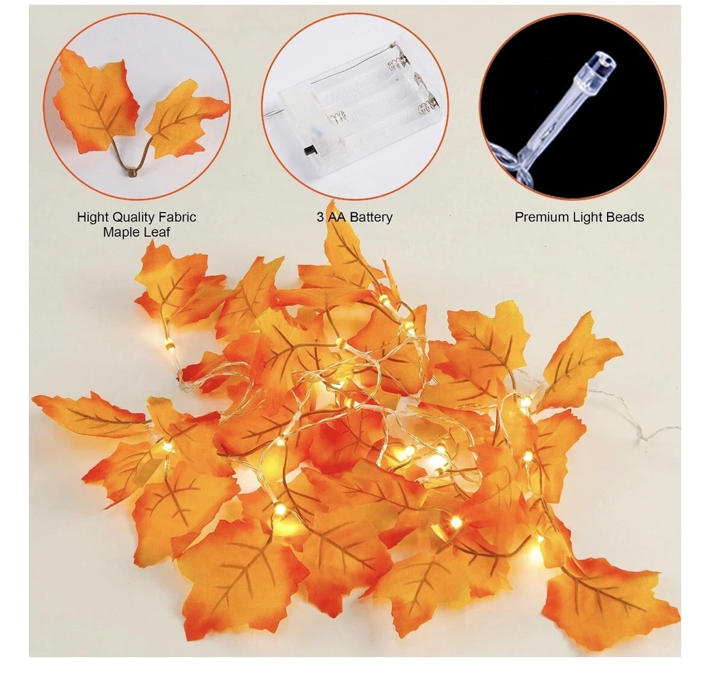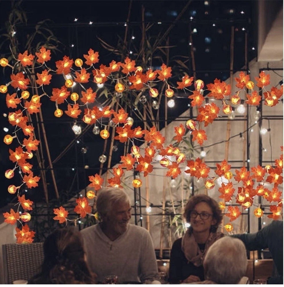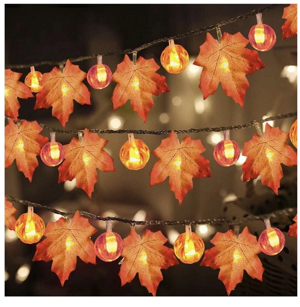 Bring the warmth of fall into your home with these seasonal pumpkin and Maple Garland String Lights. Perfect for Thanksgiving and fall decorations, this light string will create a cozy atmosphere in any room. The lights feature pumpkin and maple leaf shapes, adding a touch of seasonal charm to your decor. These lights are designed for indoor use and are perfect for adding a touch of seasonal flair to your home or office. Whether you're decorating for a party or just want to add a touch of fall to your space, these lights are sure to impress. So why wait? Order your seasonal pumpkin and Maple Garland String Lights today and bring the beauty of fall into your home!