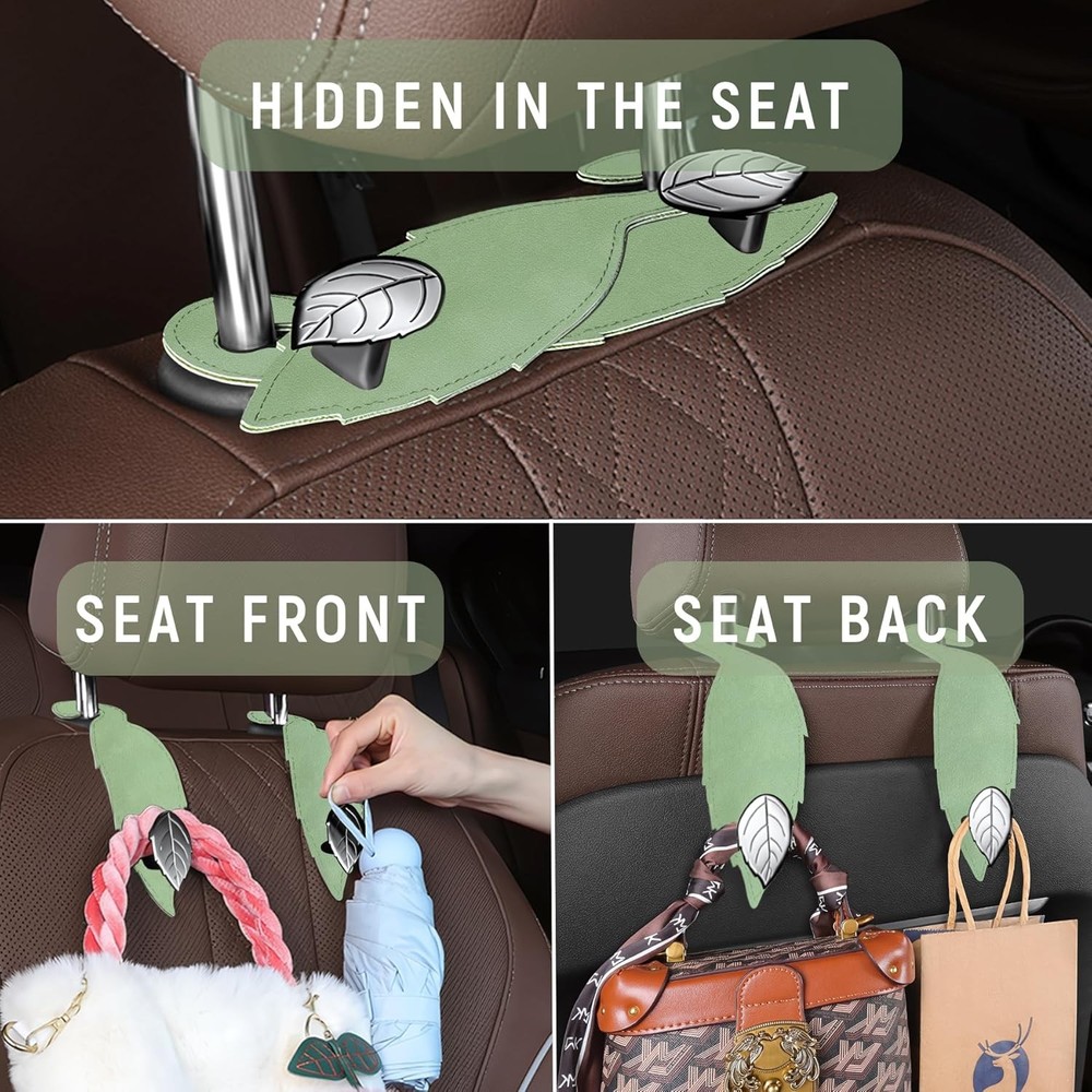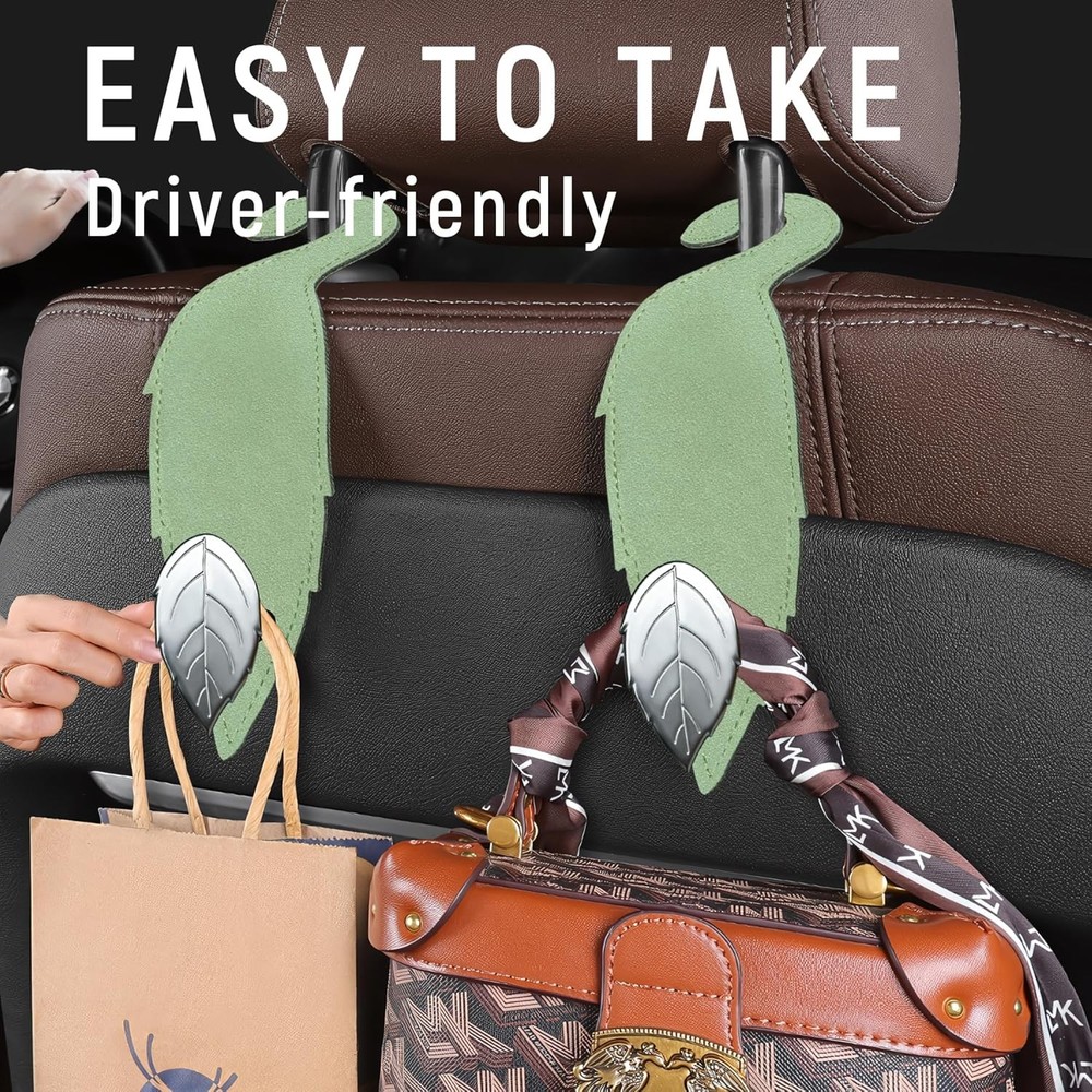 Seat Headrest Hook: 2 Pack Universal Vehicle Storage Hanger-Upgrade Green