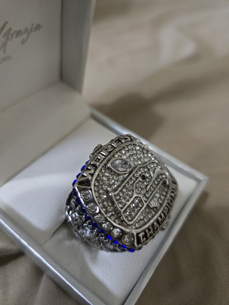 The Seattle Seahawks Championship Ring is a vintage sports memorabilia item commemorating the Seattle Seahawks' victories in the National Football League (NFL) Super Bowl. This unique TrophyRing features the iconic team logo and is a special piece for any fan of the Seattle Seahawks. Its size of approximately 3.9 inches makes it a meaningful and tangible representation of the team's success in the league. This championship ring is a must-have for any football enthusiast looking to add a piece of history to their collection.
