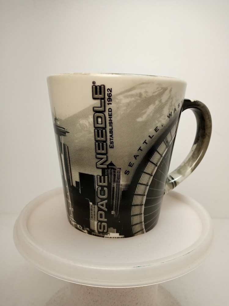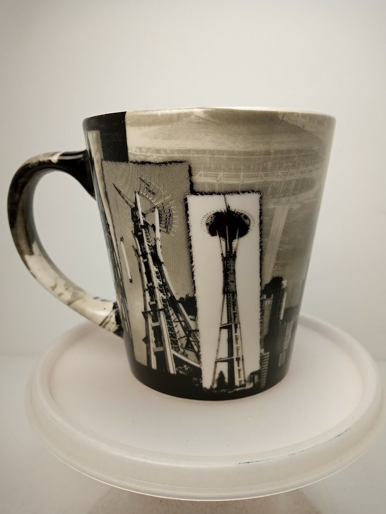 Pre-Owned Seattle Washington Space Needle Black / Gray & White Coffee Tea Mug Cup EUC. Contact me with any questions. Thanks! Condition is "Used". Shipped with USPS Priority Mail.