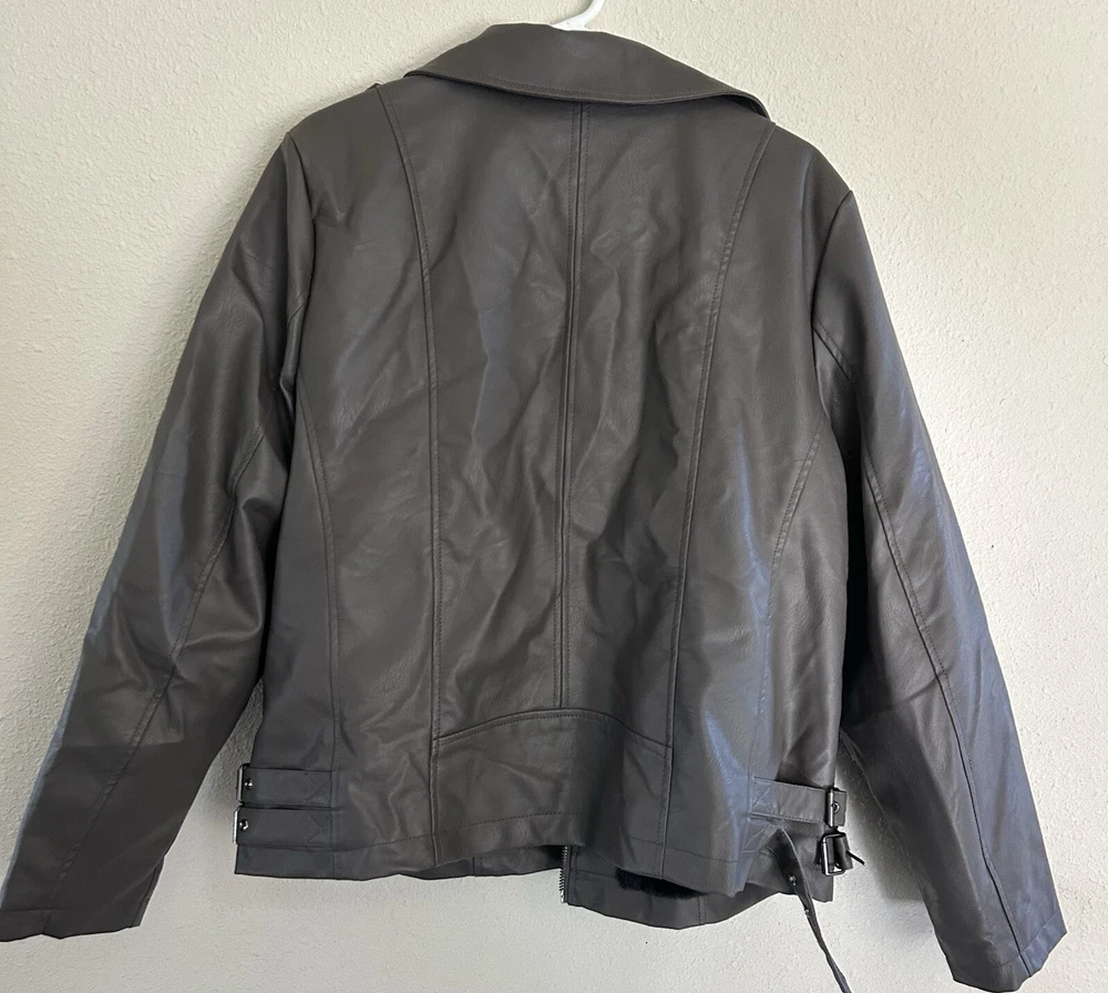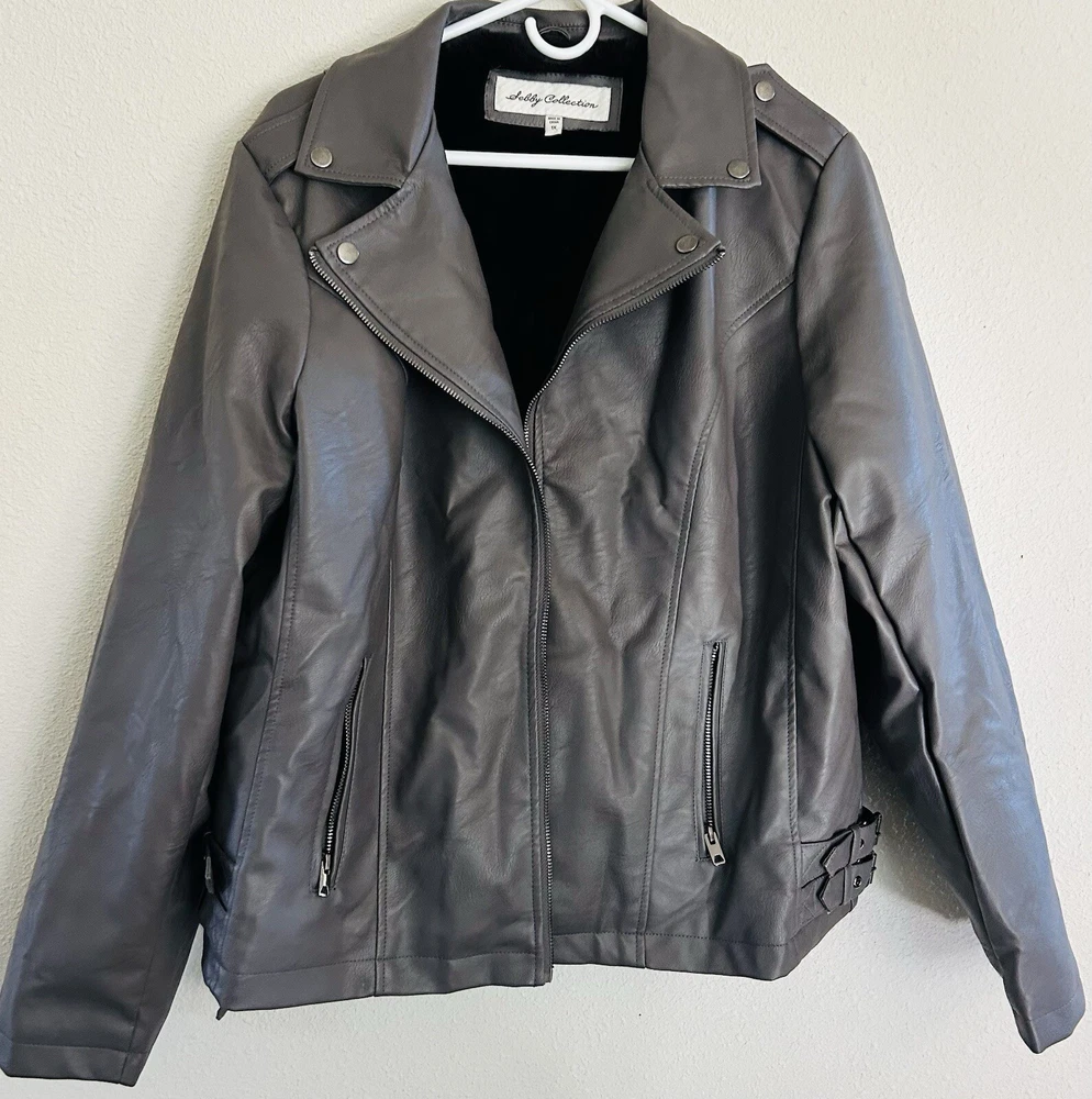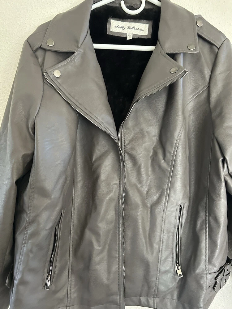Sebby Collection Faux Leather Jacket Size 1x Long Sleeve Lined. Condition is Pre-owned. Shipped with USPS Ground Advantage.