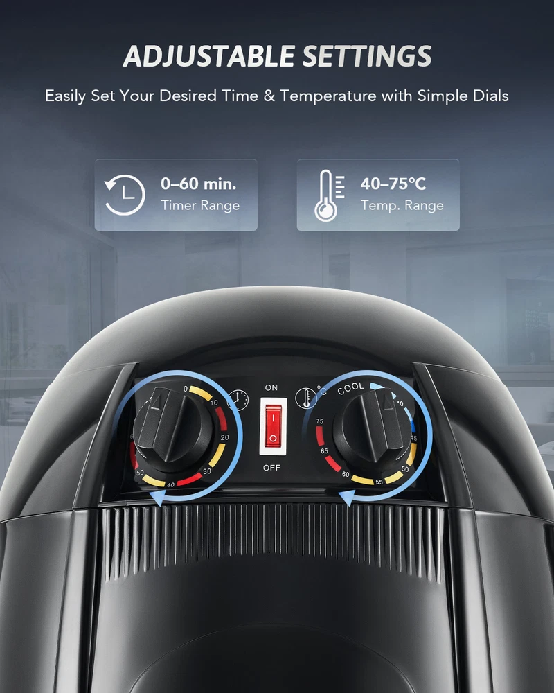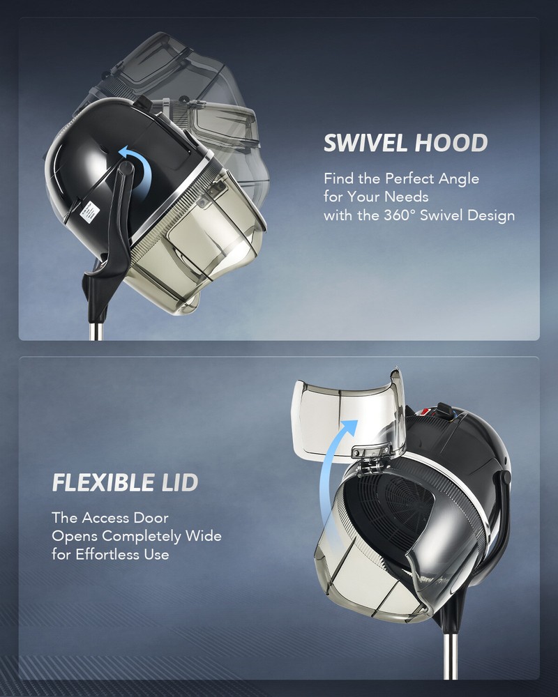 Description Dry, style & perm your hair while staying in control & comfortable with CO-Z's hooded hair dryer stand! Whether it’s dyeing hair, conditioning, or just everyday drying, our standing hooded hair dryer has you covered. It’s designed with spa, salon, and home use in mind to give your hair the gentle pampering and care it needs when drying hair for day to day use. High Power Motor & Easy to Adjust Temperature Settings Our standing hooded dryer with rolling wheels uses a 1300W motor to deliver heating up to 75°C while maintaining low noise levels. You can easily adjust the heat using the control panel on the back. Sturdy Build & Thoughtfully Designed for All Hair Types We use a stainless steel heating element to deliver even heating to all areas so you can use it for a wide range of applications. The hood hair dryer is suitable for use on all hair types while keeping your hair safe and protected. There’s more to love: Helps protect against dryness, split ends, frizz, and more 6'11" long cord makes it a breeze to plug in and move around The hair dryer hood swivels with ease for a comfortable fit Designed with vents on the hood to prevent overheating for long-term use Can easily be assembled quickly by following the simple instructions Enjoy salon & spa quality hair blowouts in the comfort of your home with our hooded hair dryer with stand! Features Protect and Style Everyday: CO-Z's stand hair dryer uses a 1300W heating system to deliver even heating to dry, perm, color, condition, and style your hair. It’s ideal for use in homes, spas, salons, and more to volumize hair and leave behind a subtle shine while protecting against dryness, split ends, and frizz. Adjustable Temperature and Timer: This professional hair dryer offers an adjustable temperature range of 40-75°C (104-167°F) to provide a suitable fit for safely drying all hair types. It also lets you set the automatic timer from 0 to 60 minutes to give you more control. Get the Right Height & Angle: This standing hair dryer for hair salons and home use easily adjusts from 50" to 63" in height and offers smooth 360° rotation for the hood to ensure your comfort while drying hair. Quiet and Easy to Roll: This standing hooded hair dryer is designed for a low-noise experience, allowing you to read, talk, or listen to music while your hair dries. The 360° caster wheels enable smooth and effortless rotation in any direction. Quick Assembly & Safe Use: The rotating stand hair dryer features an intuitive design and comes with step-by-step instructions for quick assembly. Its durable stainless steel heating frame along with the air vents on the back of the hood prevents overheating for lasting safe use. Specifications Rated Power: 1300W Temperature Range: 104-167°F (40-75°C) Timer Range: 0-60 min. Height: 50-63 in. (126-160 cm) Hood Angle Range: 30-180° Hood Inner Dimensions: 11.8 x 10.6 in. (30x27 cm) Net Weight: 13.9 lb. (6.3 kg) Package List 1x Hooded Helmet 1x Upper Pole 1x Lower Pole 5x Legs 1x Base Hub 1x Base Bottom 1x Instruction Manual On Nov 18, 2025 at 18:30:49 PST, seller added the following information: