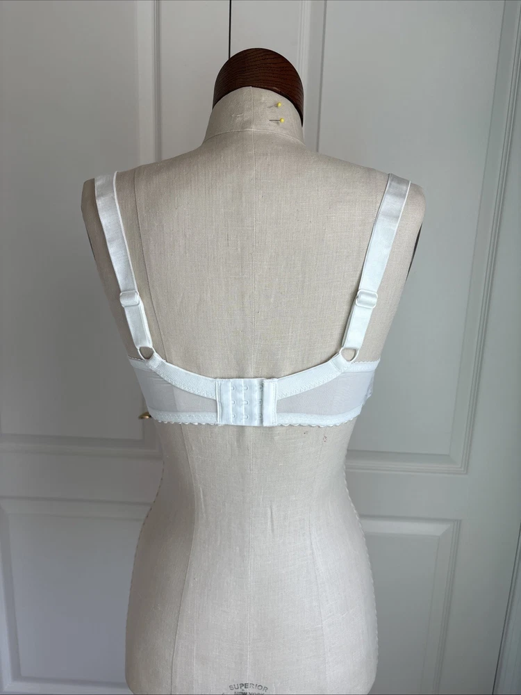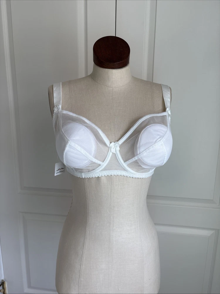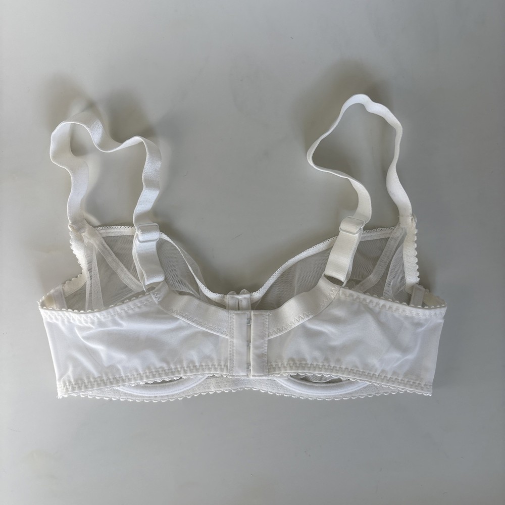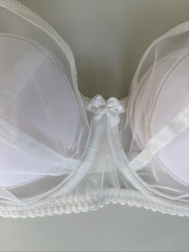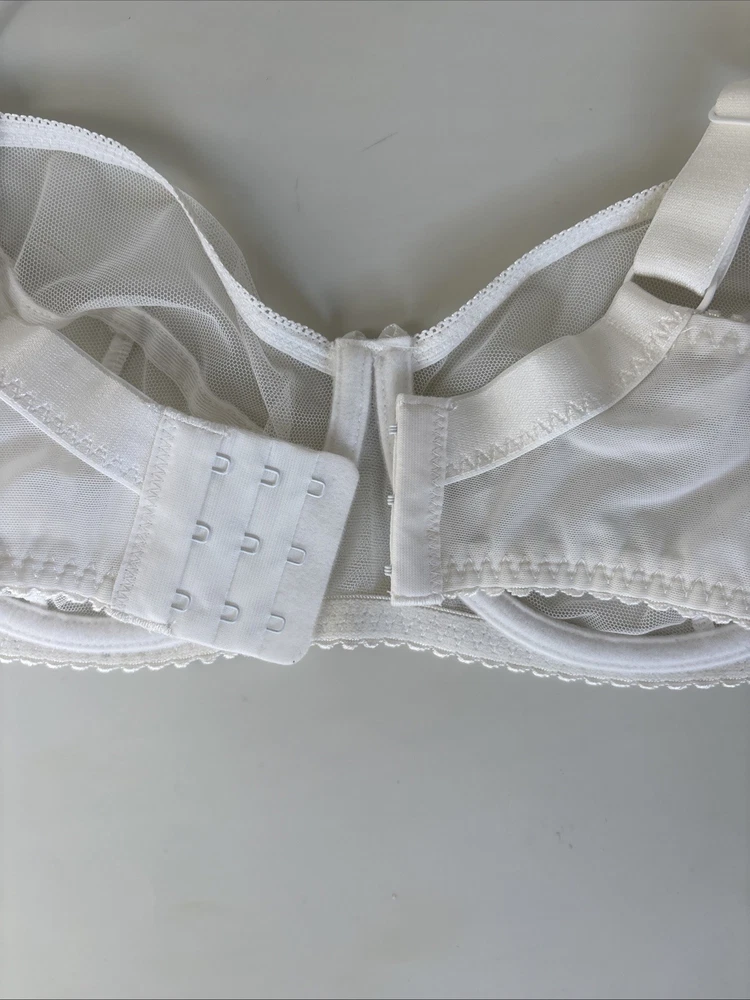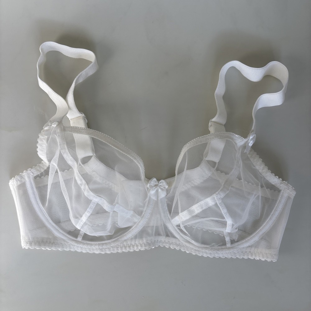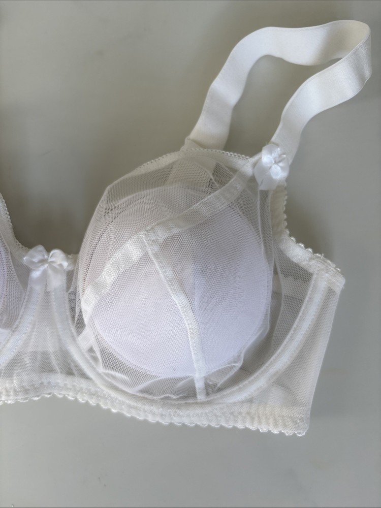 The Sheer Seduction Full Cup Bra uses 3 section cups for a super supportive sexy bra. This bra is supportive enough to be your favorite everyday bra, while the sheerness adds charisma for a special occasion Production Sample Ivory Size 34DD