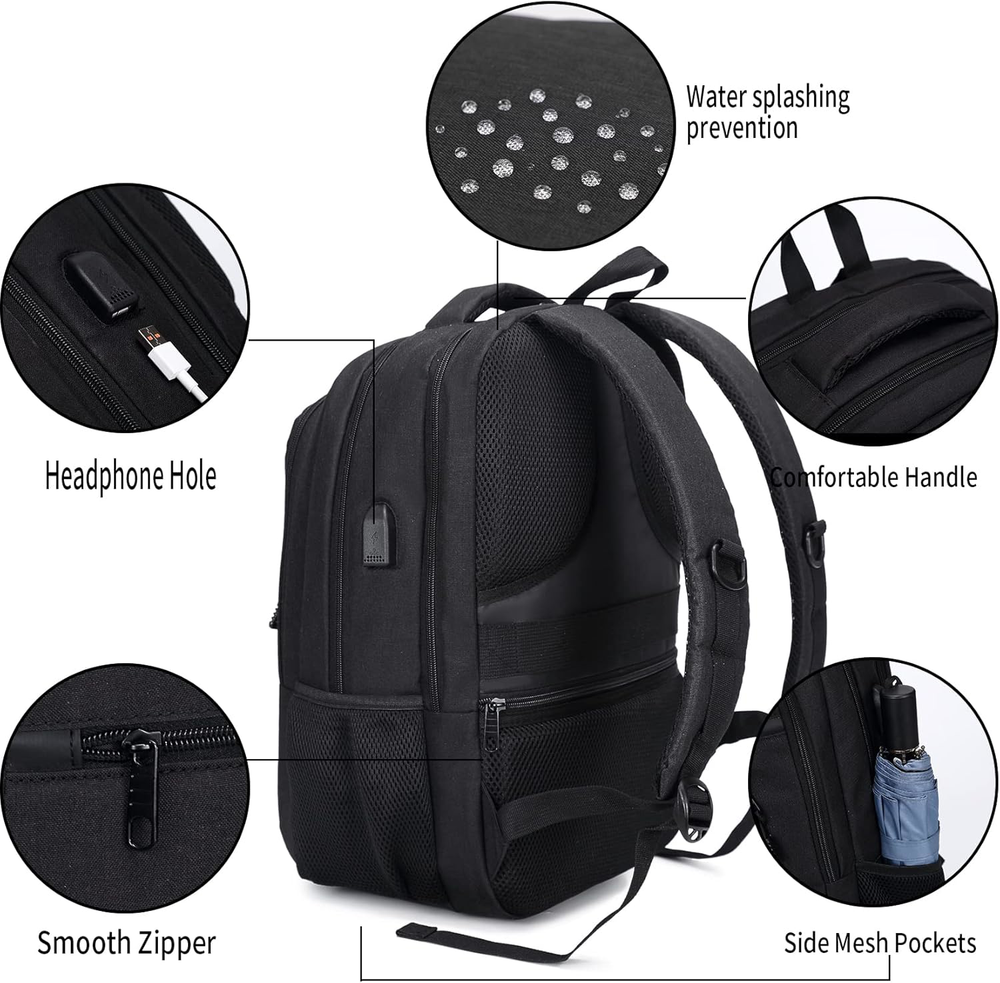 This anti-theft laptop backpack is a game-changer for travelers! The USB port is super convenient for charging on the go, and the 15.6-inch compartment fits my laptop snugly. The sleek black design works for both men and women, plus the quality feels durable. Fast shipping and excellent customer support made the purchase even better—highly recommend for security and style!
