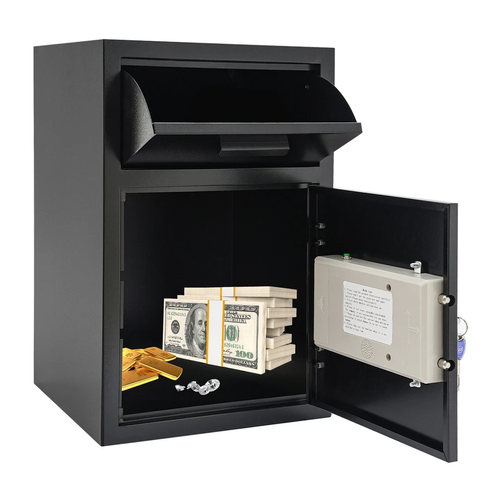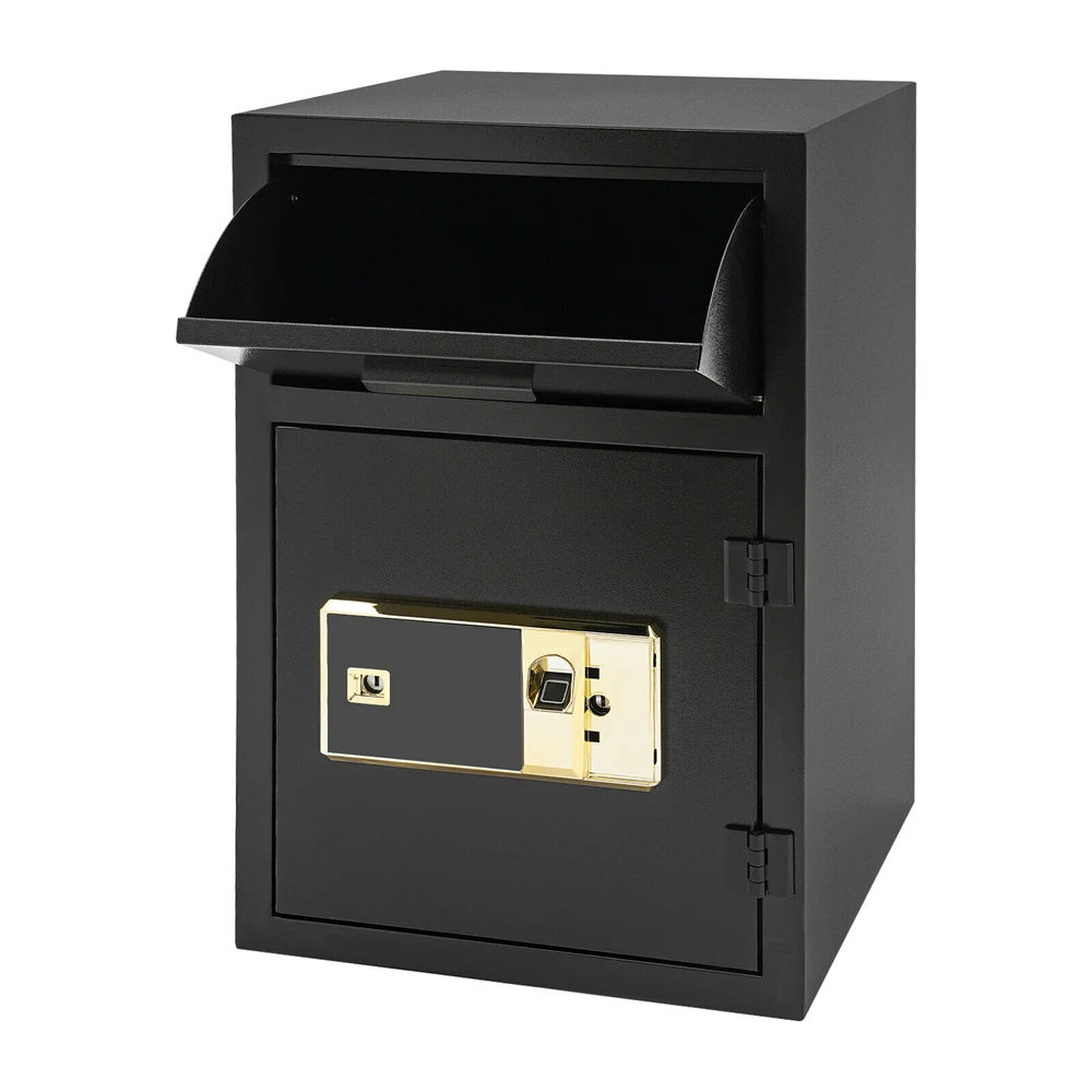 Description A high-quality safe can enhance your sense of security even more. This safe is made of sturdy steel and has strong reliability. The sturdy anti-theft lock can protect your valuable property, and the intelligent alarm mechanism allows you to keep an eye on its status at all times. Having this high-quality safe allows you to confidently go out. Key Features Build to Last: It is made of sturdy and thickened steel plates, and adopts laser cutting and galvanizing processes, with the advantages of high strength, rust resistance, and impact resistance, providing you with long-lasting and reliable protection. Large Capacity: The large size of 14*14*21.7 inches provides you with 0.71ft³ of space to help you organize important items and reduce clutter. The wide top can also be used for temporary storage of small items. Powerful Protection: The sturdy lock, 1mm thickened material, three types of unlocking keys((fingerprint, key, password)), and high-quality lock tongues provide your valuables with anti-theft protection. Intelligent Alarm Mechanism: If the password is entered incorrectly three times, an alarm will sound and it will automatically lock for 1 minutes. An alarm will also sound when the battery is low. The intelligent alarm mechanism enhances its security. Convenient to Use: The delivery port with a large opening angle allows you to deliver important items into the safe without opening the door, making it more convenient to use. Easy Installation: Thanks to its pre-drilled mounting holes and screws, you can mount this product on the wall or you can directly place it on the floor for more flexibility and convenience. Nice Appearance: The classic black and smooth lines give the product a sense of modernity and fashion, which can blend with most home and office decoration styles. Customer Service: Communication is the best way to solve problems. If you have any problems, please feel free to contact us. We will reply and solve the problem for you as soon as possible. Details Round Corners: The smooth corners can better ensure safety during installation and use. Practical Handle: The handle design on the delivery port makes it easy for you to open and drop items. Application It is an ideal choice for families, offices, hotels, schools, hospitals, shopping malls, banks, and restaurants to store valuable assets and belongings, such as money, check payments, files, documents, birth certificates, social security cards, coins, etc. Specification Color: Black Style: Modern Material: Steel Process: Laser Cutting, Galvanizing Shape: Rectangular Assembly Required: No Mounting Type: Wall Mount, Floor Mount Unlocking Methods: Password, Fingerprint, Key Capacity: 0.02m³/0.71ft³ Steel Board Thickness: 1mm/0.04in Battery Type: 4*AA Batteries(Not Included) Delivery Port Size(L*W): 29*11cm/11.42*4.33in Safe Inner Size: 33.5*35*52cm/13.19*13.78*20.47in Product Size: 35.5*35.5*55cm/14*14*21.7in Package Size: 62*42.2*42.2cm/24.41*16.61*16.61in Gross Weight: 10.2kg/22.49lbs Net Weight: 9kg/19.84lbs Package Included 1* Safe 4* Keys 1* External Emergency Battery Pack 1* English Manual All Accessories for Assembly Notes 1.Please read the manual carefully before using it and pay attention to the dimensions of this safe before purchasing. 2.It is advisable to set the combination when the safe door is open. After setting the code, you should enter the new code several times. The door can be locked after confirmation. You can change the password to their specific password after purchasing a new safe. Please refer to the manual for the change method. 3.Please keep the spare key and spare battery(not included) in a safe place. 4.Please check that all keys are complete. 5.Please do not leave large amounts of cash and valuables unattended. 6.When moving and relocating, please do not hit the safe to avoid damage. 7.When not in use for a long time, please remove the battery from the battery box. 8.Please bring your own 4*AA batteries. 9.Please allow the slight color difference caused by the shooting light and 1-3cm error due to manual measurement, and make sure you do not mind before ordering. Payment Delivery details Terms of sales About us Contact us Payment We accept ebay payment 。 Fees such as import duties, taxes are not included in the item price or shipping costs. These charges are the buyer's responsibility. Delivery details Shipping: 2-9 working days to: USA Terms of sales We maintain high standards of excellence and strive for hundred percent customer satisfaction. Feedback is very important to us. We hope that you contact us immediately before you give neutral or negative feedback, so that we can address your concerns. It is impossible to address issues if we do not know about them! About us Your satis faction is our ultimate goal. We work hard to earn your trust and future business. Our certified technicians have tested each item before shipping. The unit comes with 1 year limited warranty on all manufacturing defects. a) If you receive a defective item, you may return it or ask for a discount. Please contact us within 14 days after you receive the package. b) What you returned must be intact and in its original packaging as re? u. Customer is responsible for shipping costs of the returned item. c) We will cover the cost of shipping back t with the shipping rate indicated in the registration page. We will send you a new unit or refund the full payment you paid. Thank you. Contact us Business Hour Business Hour: Monday To Friday: 8:30 AM to 5:00 PM (Beijing China time) Due to time zones, our reply to your questions may not be immediately. But within above working time, we will reply your email within 24 hours. If it's non-workdays, please kindly be patient and wait till Monday. Please contact us with ebay message. Please feel free to contact us if you have any questions. Monday To Friday: 8:30 AM to 5:00 PM (Beijing China time) Due to time zones, our reply to your questions may not be immediately.