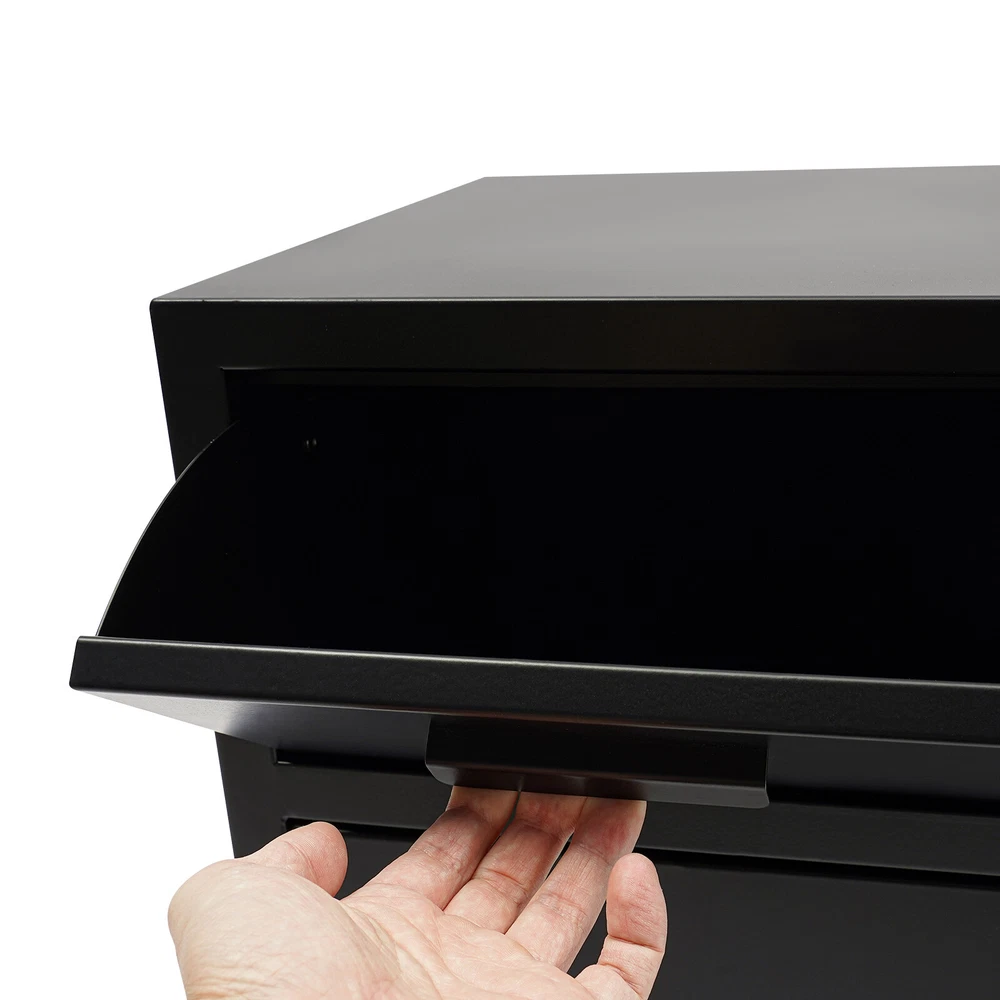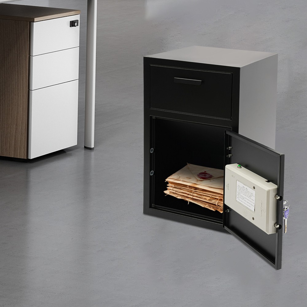 A high-quality safe can enhance your sense of security even more. This safe is made of sturdy steel and has strong reliability. The sturdy anti-theft lock can protect your valuable property, and the intelligent alarm system allows you to keep an eye on its status at all times. Having this high-quality safe allows you to confidently go out. Drop Box for Money and Mail, Drop Slot Safe, Cash Depository Safe Description A high-quality safe can enhance your sense of security even more. This safe is made of sturdy steel and has strong reliability. The sturdy anti-theft lock can protect your valuable property, and the intelligent alarm system allows you to keep an eye on its status at all times. Having this high-quality safe allows you to confidently go out. Key Features Build to Last: It is made of sturdy and thickened steel plates, and adopts laser cutting and galvanizing processes , with the advantages of high strength, wear resistance , and compression resistance , providing you with long-lasting and reliable protection. Thoughtful Design: The drop slot safe has spikes at the end and they're pretty sharp, definitely prevents nosy hands from trying to pull anything out. Large Capacity: The large size of 13.86*13.86*21.65 inches provides you with 1.31ft³ of space to help you organize important items and reduce clutter. The wide top can also be used for temporary storage of small items. Powerful Protection: The sturdy lock, thickened material, two types of unlocking keys, and high-quality lock tongues provide your valuables with anti-theft protection. Intelligent Alarm System: If the password is entered incorrectly three times, an alarm will sound and it will automatically lock for 3 minutes, while pressing the wrong key four times will lock for 10 minutes. After entering an incorrect password or being hit by a heavy object, a 60-second alarm sound will sound. An alarm will also sound when the battery is low. The intelligent alarm system enhances its security. Convenient to Use: The delivery port with a maximum opening angle of 90 ° allows you to deliver important items into the safe without opening the door, making it more convenient to use. Easy Installation: Thanks to its pre-drilled mounting holes and screws, you can mount this product on the wall or you can directly place it on the floor for more flexibility and convenience. Nice Appearance: The classic black and smooth lines give the product a sense of modernity and fashion, which can blend with most home and office decoration styles. Customer Service: Communication is the best way to solve problems. If you have any problems, please feel free to contact us. We will reply and solve the problem for you as soon as possible. Details Round Corners: The smooth corners can better ensure safety during installation and use. Practical Handle: The handle design on the delivery port makes it easy for you to open and drop items. Application It is an ideal choice for families, offices, hotels, schools, hospitals, shopping malls, banks, and restaurants to store valuable assets and belongings, such as money, check payments, files, documents, birth certificates, social security cards, coins, etc. Specification Color: Black Style: Modern Material: Steel Process: Laser Cutting, Galvanizing Shape: Rectangular Assembly Required: No Mounting Type: Wall Mount, Floor Mount Capacity: 0.037m³/1.31ft³ Steel Board Thickness: 1mm/0.04in Battery Type: 4*AA Batteries(Not Included) Product Size: 35.2*35.2*55cm/ 13.86*13.86*21.65in Package Size: 42.2*42.2*62cm/16.61*16.61*24.41in Gross Weight: 10.2kg/22.49lbs Net Weight: 9kg/19.84lbs Package Included 1* Safe 4* Keys 1* Spare Battery Box 1* English Manual All Accessories for Assembly Notes Please read the manual carefully before using it and pay attention to the dimensions of this safe before purchasing. It is advisable to set the combination when the safe door is open. After setting the code, you should enter the new code several times. The door can be locked after confirmation. You can change the password to their specific password after purchasing a new safe. Please refer to the manual for the change method. Please keep the spare key and spare battery box in a safe place. Please check that all keys are complete. Please do not leave large amounts of cash and valuables unattended. When moving and relocating, please do not hit the safe to avoid damage. When not in use for a long time, please remove the battery from the battery box. Please bring your own 4*AA batteries. Please allow the slight color difference caused by the shooting light and 1-3cm error due to manual measurement, and make sure you do not mind before ordering. Payment Delivery details Terms of sales About us Contact us Payment We accept ebay payment 。 Fees such as import duties, taxes are not included in the item price or shipping costs. These charges are the buyer's responsibility. Delivery details Shipping: 2-9 working days to: USA Terms of sales We maintain high standards of excellence and strive for hundred percent customer satisfaction. Feedback is very important to us. We hope that you contact us immediately before you give neutral or negative feedback, so that we can address your concerns. It is impossible to address issues if we do not know about them! About us Your satis faction is our ultimate goal. We work hard to earn your trust and future business. Our certified technicians have tested each item before shipping. The unit comes with 1 year limited warranty on all manufacturing defects. a) If you receive a defective item, you may return it or ask for a discount. Please contact us within 14 days after you receive the package. b) What you returned must be intact and in its original packaging as re? u. Customer is responsible for shipping costs of the returned item. c) We will cover the cost of shipping back t with the shipping rate indicated in the registration page. We will send you a new unit or refund the full payment you paid. Thank you