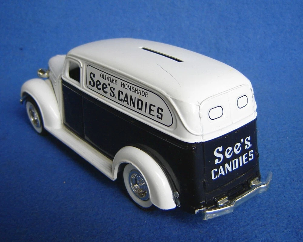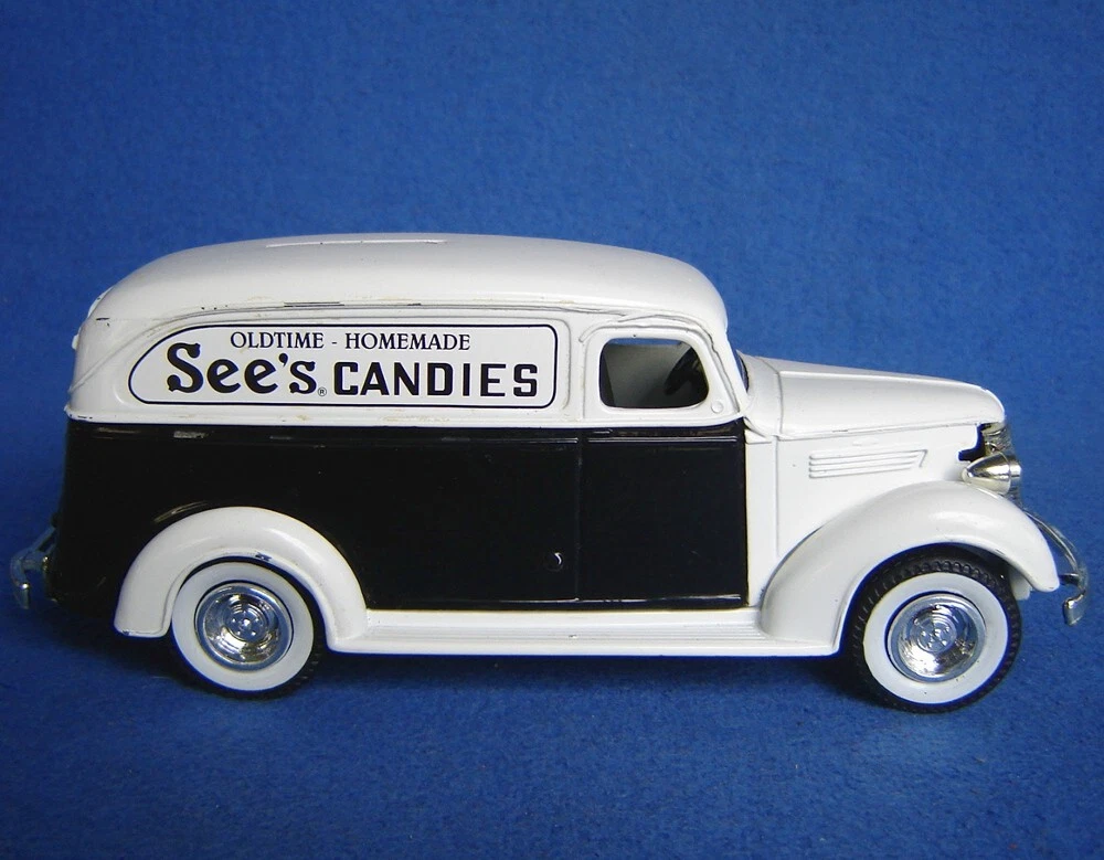 Ertl Die Cast 1/25 scale 1938 Chevy Sees Candy Delivery Van. Heavy cast truck is 8" long with lots of accurate details. Has been displayed on open shelf for many years and shows light wear/age from such, overall VG. Sorry no key, but easy to open without one. Please check pictures for best description and details. Questions are welcome. We try to describe our merchandise as honestly and completely as we can, including actual photos. If you have any questions or concerns, please ask and we will do our best to answer them, we want you to know exactly what you are bidding on. We use recycled packing materials whenever possible to help the earth and to keep costs down. We pack very well to protect your item and will gladly combine shipping whenever possible.