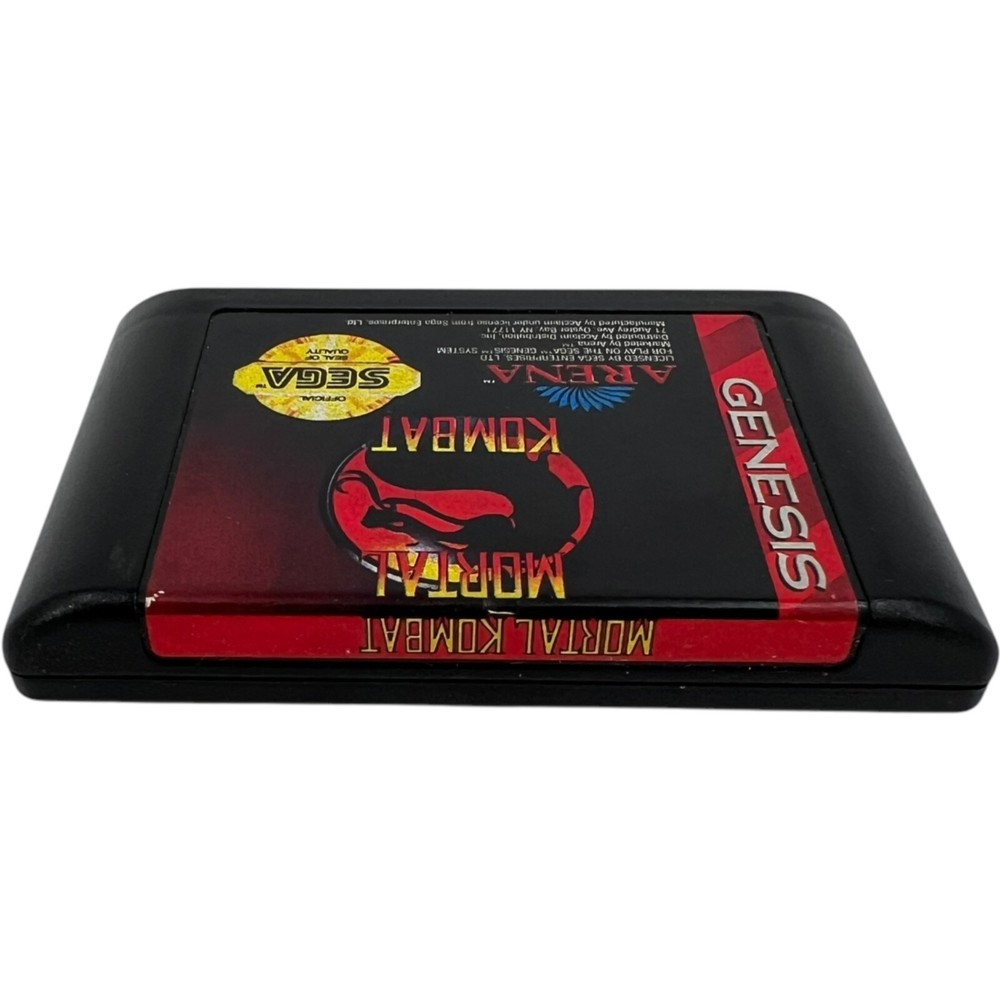 Good preowned condition Cosmetic wear as shown in pics Sega Genesis Mortal Kombat Game Cartridge 16-Bit