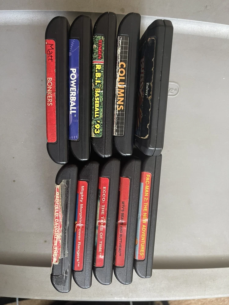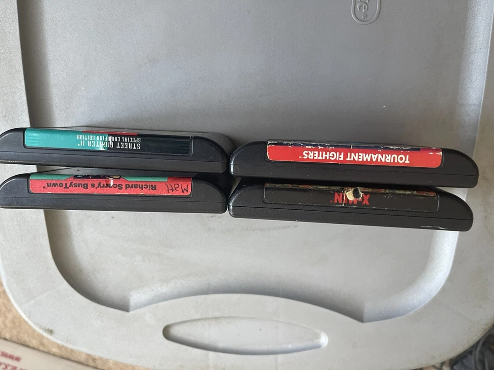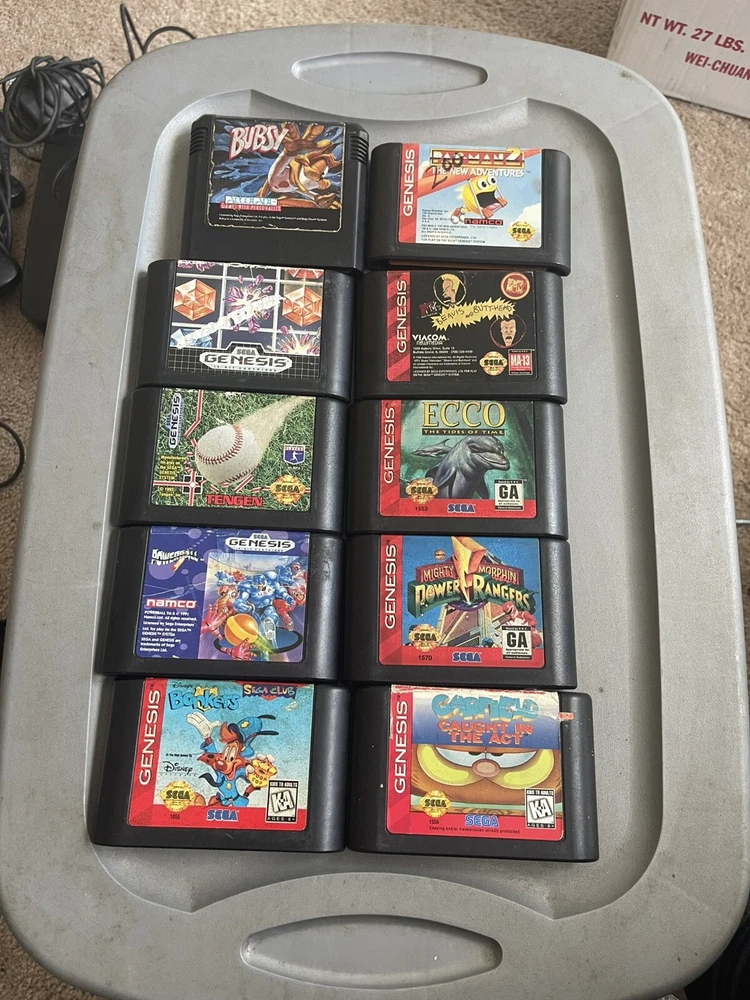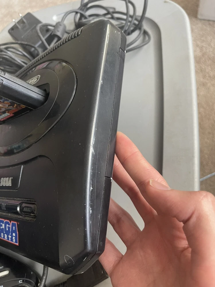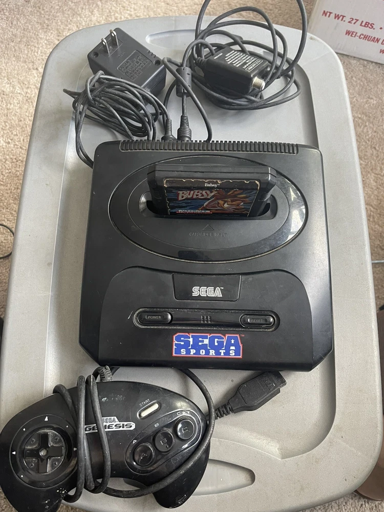 This is an extremely hard to find console that rarely comes up for sale. These consoles were produced for Sega kiosks that went into baseball stadiums around the United States. I'm not sure how many were produced but there are 30 stadiums in the USA Today. This console is fully functional and comes with the power supply, tv connection and 1 controller. It is console, cords and controllers only. This console is in very good shape with some minor scratches and scuffs on the right side of console. I have also included 14 games all which have been tested and are in working condition. Some of the games have damages to artwork. Sold as is.