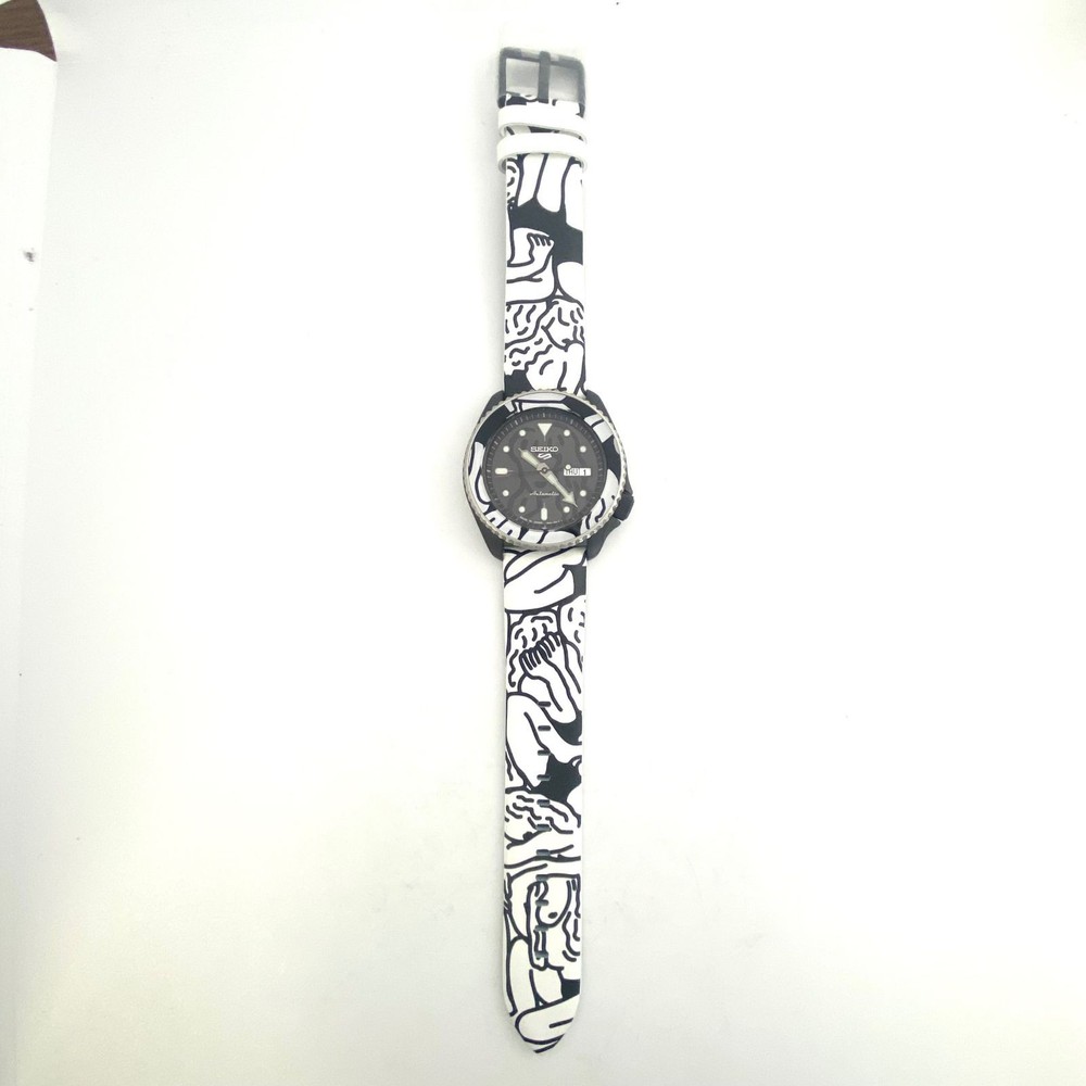 Seiko 5 Sports Auto Moai Limited Edition Watch SBSA123 4R36 Automatic Black Key Features ## Product Overview This is a rare and unused Seiko 5 Sports Limited Edition Automatic Watch, collaboration with the artist Auto Moai. Model SBSA123 features a distinctive design with a black dial, transparent case back, and a leather strap. Limited to only 1,500 pieces, this watch combines unique artistic expression with reliable Japanese craftsmanship. ## Key Features and Benefits - Unique collaboration between Seiko and contemporary artist Auto Moai - Limited edition with only 1,500 units produced - Automatic movement with reliable 4R36 caliber - Stylish black dial with bold artwork inspired by Auto Moai’s “Faceless Person” motif - Transparent case back to view the movement - Day and date display in Japanese and English - 10 ATM (100 meters) water resistance - Genuine leather strap with protective seals, unused condition - Perfect for collectors and art enthusiasts seeking exclusive timepieces ## Technical Specifications and Details - **Brand:** Seiko - **Model Number:** SBSA123 - **Model Name:** Auto Moai Limited Edition - **Movement:** Automatic (Caliber 4R36) with manual winding and seconds stop function - **Case Diameter:** Approximately 4.2 cm - **Case Thickness:** About 1.3 cm - **Lug Width:** Approximately 2.2 cm - **Weight:** Approximately 90 grams - **Material:** Stainless steel case, genuine leather strap - **Dial:** Black with Auto Moai artwork - **Glass:** Hard mineral crystal - **Back:** Transparent display case back - **Water Resistance:** 10 ATM (100 meters) - **Features:** Day and date display (Japanese/English switch), unidirectional bezel - **Belt:** Adjustable leather strap with protective seals on buckle - **Condition:** Brand new, unused with protective seals intact; minor storage marks possible due to storage ## Product Condition This watch is in brand new, unused condition. The protective seals are still attached to the case back and buckle. It has been stored carefully and shows no signs of wear or damage. The watch has been tested and is functioning properly, with a daily accuracy of approximately +15 seconds and no issues with the movement or power reserve. ## Main Selling Points - Limited edition collaboration with a renowned contemporary artist - Unique, artistic dial design with a bold statement - Authentic Seiko automatic movement with reliable performance - Unused Specifications Brand SEIKO Country Japan Product Description eBay Item Description [Rare/Unused] Watch Men's Seiko SEIKO 5 Sports Automoai Collaboration Limited Shipping Using standard shipping (Japan Post, FedEx or DHL), an estimated delivery date will be around 5-14 days after shipment. We send it with your tracking number, so that you can track the delivery status anytime. Shipping is only available to addresses registered on eBay. If you would like to send an item to a different address, please update your shipping address on eBay before you complete your purchase. Company Profile Our store is located in Japan. We will help you to find what you are looking for by searching all over Japan. We know where to look for and provide this service for free, so please feel free to contact us. Payment eBay's recommended payment methods are available. You will be able to pay with credit card, debit card, Apple Pay, Google Pay, or PayPal. International Buyers - Please Note: Import duties, taxes, and charges aren't included in the item price or shipping charges. These charges are the buyer's responsibility. Please check with your country's customs office to determine what these additional costs will be prior to bidding or buying. For US buyers: Items are shipped via DDP (Delivered Duty Paid), so you will not be charged any customs duties.