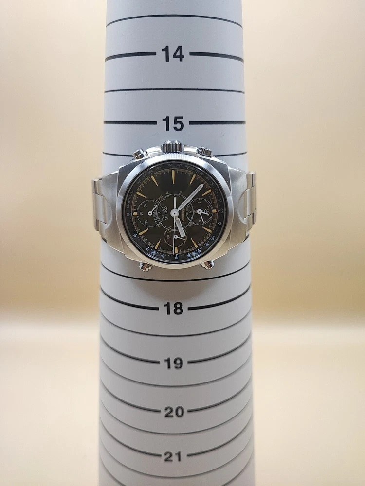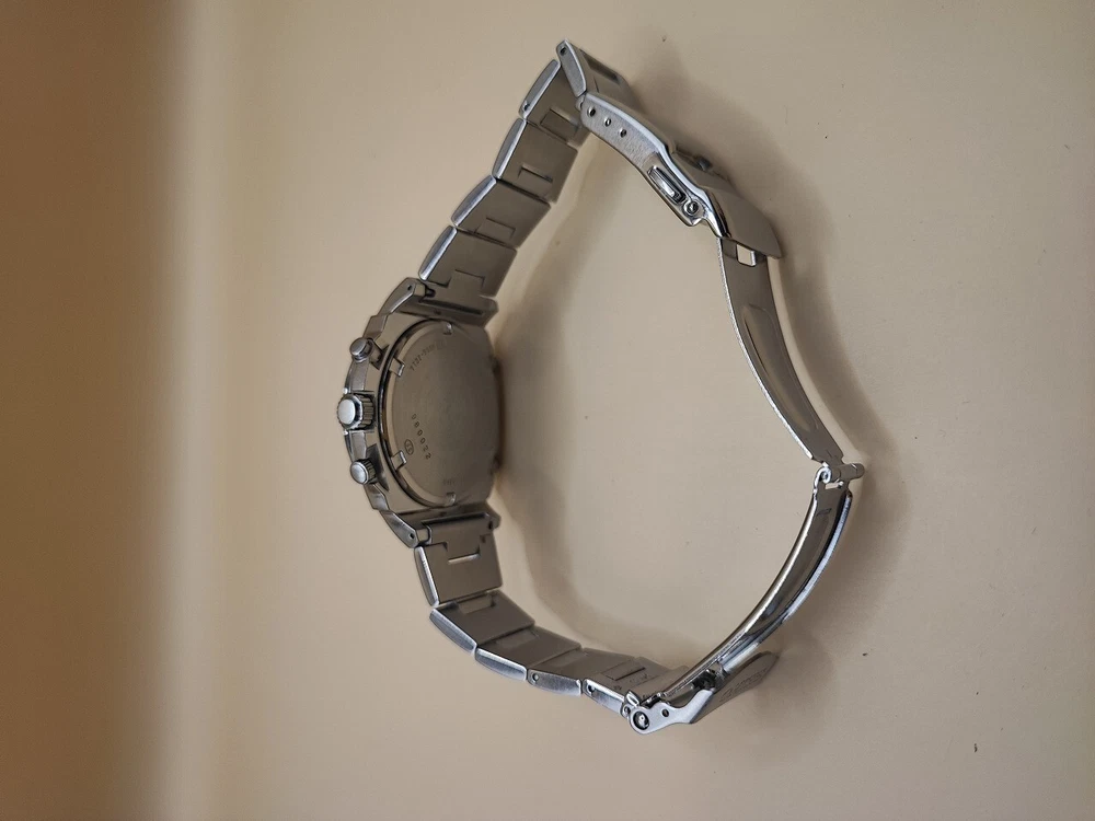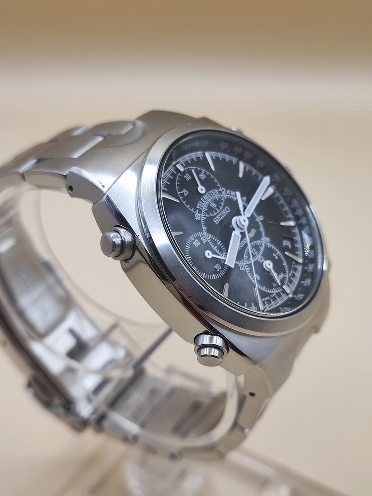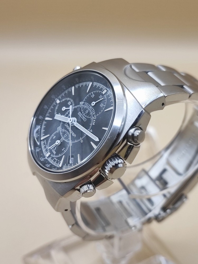 This Seiko Chronograph is a sleek, reliable timepiece with a sharp black dial and classic Japanese precision. The quartz movement keeps perfect time, and the very good condition means it looks nearly new despite minor wear. The stainless steel case and band have minimal scuffs, nothing distracting. Perfect for daily wear or special occasions—love the clean, professional look!