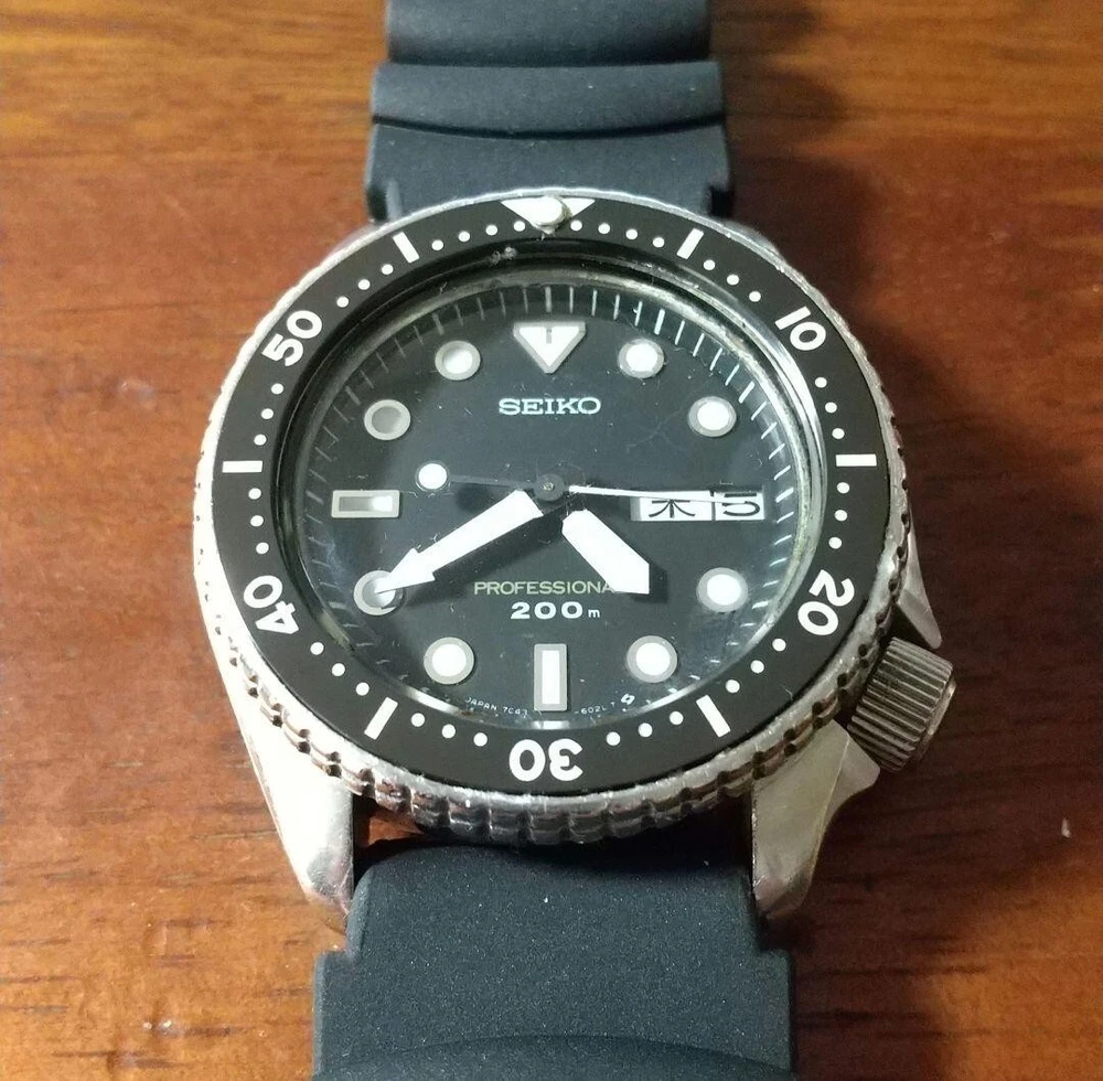 Seiko Diver 7C43-6010 200m Professional Watch, Ceramic Bezel Insert, Used JP Description Seiko Diver 7C43-6010 200m Professional. There are light abrasions throughout including the glass. The bezel turns in both directions. The screw-down crown is fine. The bezel insert has been replaced with an external ceramic one. The belt is an unused external one. The battery level is unknown. The size of the watch is approximately 38mm. There are no accessories. We pack and ship with care. Payment We accept credit cards, debit cards, Apple Pay, Google Pay, and paypal. Payment must be made within 3 days of purchase. Shipping It will be shipped by Fedex or DHL or Japan Post. Shipping from Japan with Tracking Number. Items will be shipped within 5 business days after payment is received. Shipping is only available to the address registered on ebay. Please note that any address not registered on ebay is not acceptable to ship. Terms of Sale: Return ~Unconditional Return Policy~ Customer service and satisfaction are very important to us. I have an unconditional return policy. Please contact us first for return before you ship it back to me. Return is allowed when the condition does not match with description. All returned items must be the original condition. Please keep in your mind that we take pictures of all the item's details to avoid any problem. If you ask for a refund or return, we might ask you to take a picture of the item to make sure it matches our record. International Buyers - Please Note: Import duties, taxes, and charges are not included in the item price or shipping cost. These charges are the buyer's responsibility. Please check with your country's customs office to determine what these additional costs will be prior to bidding or buying. Thank you for your understanding.