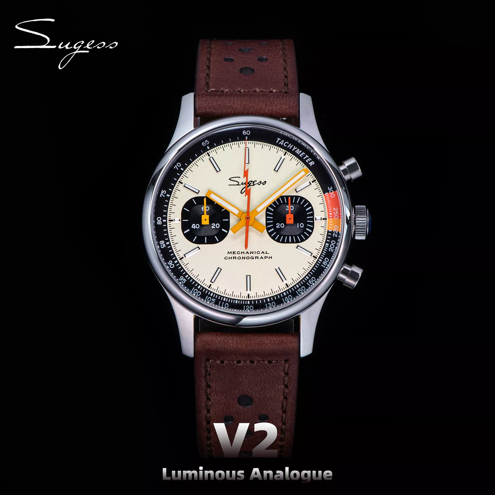 Master Chronograph Watch New Seagull 1963 Sugess Gold SWAN NECK MoonPhase