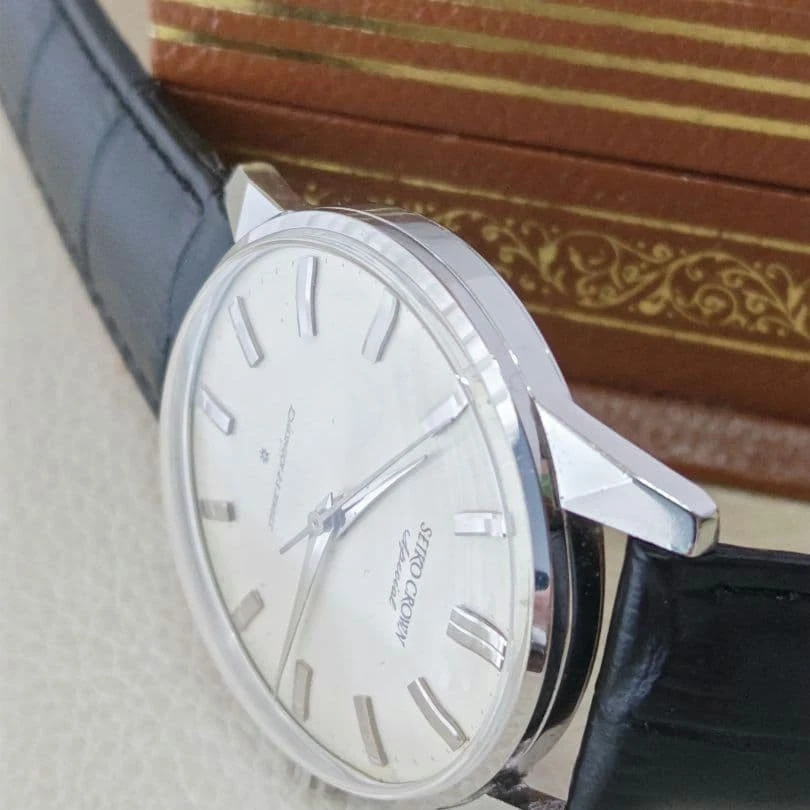 Seiko Grand Seiko First SD Gold Index Vintage SS Case Box Overhauled Key Features ## Product Title: Vintage Seiko Grand Seiko First SD Gold Index Watch – Stainless Steel Case, Overhauled, with Original Box, Excellent Condition ## Product Description: This is a vintage Seiko Grand Seiko First SD wristwatch featuring a stunning gold-inlaid dial and a durable stainless steel case. Carefully overhauled by a professional watchmaker in November 2025, this timepiece combines historical significance with excellent craftsmanship, making it a valuable addition for collectors and enthusiasts. ### Key Features and Benefits: - Authentic vintage Grand Seiko First SD model, renowned for its precision and craftsmanship - Unique gold-inlaid index dial, a rare and highly sought-after feature - Overhauled and serviced by a certified watch technician, ensuring reliable performance - Comes with a rare stainless steel case and original box, adding to its collectible value - Maintains vintage aesthetic with well-preserved case edges and overall condition ### Technical Specifications and Details: - Brand: Seiko - Model: Grand Seiko First SD - Movement: Manual winding (hand-wound) - Case Material: Stainless Steel - Case Size: Not specified (please refer to measurements) - Dial: Gold-inlaid indices - Condition: No noticeable scratches or damage; minor signs of use, overall excellent condition - Year of Manufacture: Vintage, specific year not provided - Included: Original box (not sold separately) - Service: Overhauled in November 2025 by a top-tier watch technician (no documentation available) ### Product Condition: - Condition: No significant scratches or blemishes; minor signs of use consistent with age - Condition Rank: No noticeable damage, well-maintained vintage piece ### Main Selling Points: - Rare vintage Grand Seiko model with gold-inlaid dial - Professionally overhauled for optimal performance - Comes with original box, enhancing its collector’s appeal - Excellent condition with preserved case edges and vintage charm - Authentic and highly collectible Japanese timepiece ### Additional Information: Please feel free to ask any questions. Note that price negotiations outside the comment section or inquiries from non-serious buyers will not be addressed. This watch is a distinguished collector’s item, perfect for those seeking a rare vintage Seiko with historical significance. --- **Images available for viewing.** **Shipping from Shizuoka Prefecture, Japan.** **Ships within 4-7 days via Mercari's reliable shipping service.** Specifications Brand SEIKO Country Japan Product Description eBay Item Description Seiko Crown Special SS case. Solid gold SD dial with original box [overhauled] Shipping Using standard shipping (Japan Post, FedEx or DHL), an estimated delivery date will be around 5-14 days after shipment. We send it with your tracking number, so that you can track the delivery status anytime. Shipping is only available to addresses registered on eBay. If you would like to send an item to a different address, please update your shipping address on eBay before you complete your purchase. Company Profile Our store is located in Japan. We will help you to find what you are looking for by searching all over Japan. We know where to look for and provide this service for free, so please feel free to contact us. Payment eBay's recommended payment methods are available. You will be able to pay with credit card, debit card, Apple Pay, Google Pay, or PayPal. International Buyers - Please Note: Import duties, taxes, and charges aren't included in the item price or shipping charges. These charges are the buyer's responsibility. Please check with your country's customs office to determine what these additional costs will be prior to bidding or buying. For US buyers: Items are shipped via DDP (Delivered Duty Paid), so you will not be charged any customs duties.