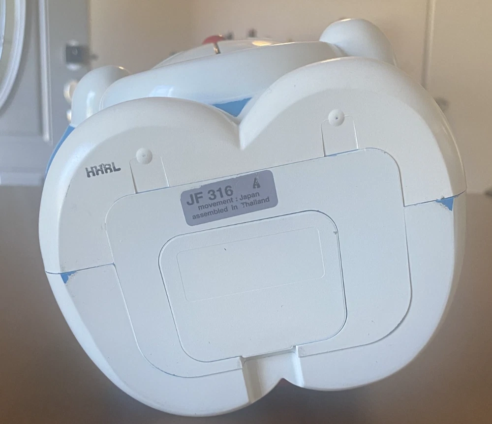 RARE VINTAGE Seiko Doraemon Talking Alarm Clock (JF-316) - fully tested & working!!! An incredible and thoughtful gift for the Anime collector in your life! Speaks in Japanese , includes adjustable volume , and retains its original yellow propeller top . Excellent collector condition with only a small scuff on Doraemon’s right cheek. Runs on 3×AA batteries (not included). Highly sought after by Seiko and anime collectors for its nostalgic charm and authentic Japanese voice. Condition Notes Excellent overall with one small scuff on Doraemon’s right cheek (see photos). Clock and alarm both tested; operate properly. Battery compartment clean and corrosion-free. Propeller is decorative and does not move. Logo and model markings crisp and intact. I include the short video showing the Japanese talking alarm. How to Set the Alarm (JF-316 Model) Turn the right wheel on the back to set the desired alarm time. Pull that wheel outward to activate the alarm circuit (this is Seiko’s on/off control). Use the rear switch to select: 「ためしならし」= Test (press to preview voice/alarm) 「めざまし」= Alarm (for timed operation) Adjust alarm volume using the side switch labeled 「音量 大/小」 (high/low). Collector's Note: The Seiko JF-316 Doraemon Talking Alarm Clock is a charming piece of late-1990s Japanese design—combining Seiko precision with the timeless appeal of Doraemon. Most examples remain in Japan or appear as boxed imports costing hundreds more. This fully tested, Japan-marked version offers collectors a rare opportunity to own an authentic working example of Seiko’s beloved おしゃべり目覚まし時計 . Includes Shipping!