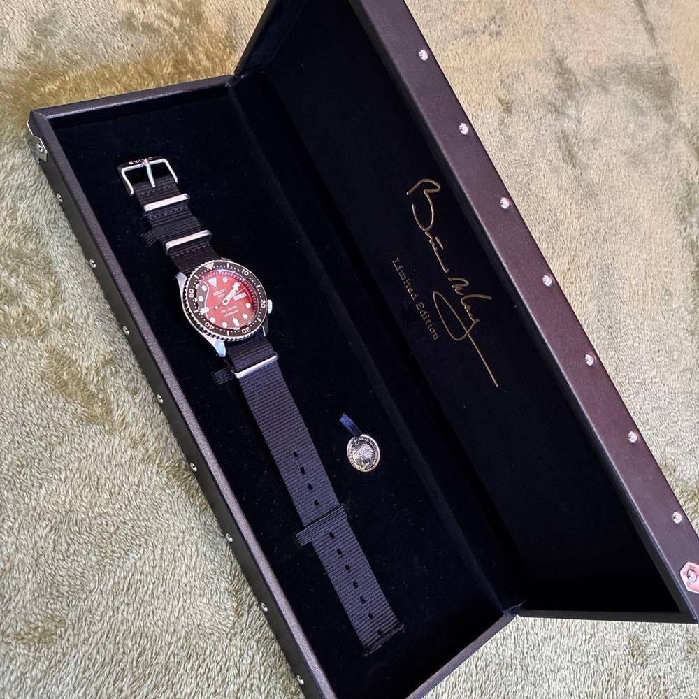 Seiko Limited Edition Brian May Collaboration Automatic Watch 10ATM Japan Made Key Features ## Product Title: Seiko Limited Edition Brian May Collaboration Automatic Watch – Japan Made, 10ATM Water Resistant, Serial Numbered, Collector’s Item ## Product Description: This is a brand-new, unused limited edition Seiko automatic watch created in collaboration with legendary Queen guitarist Dr. Brian May. Combining iconic design elements with precise Japanese craftsmanship, this watch is a must-have for collectors and music enthusiasts alike. ### Key Features and Benefits: - Officially licensed collaboration model featuring unique design inspired by Brian May’s signature Red Special guitar. - Limited to only 9,000 pieces worldwide, making it a rare collector’s item. - Features a durable stainless steel case with a see-through case back, serial number, and "LIMITED EDITION" engraving. - Equipped with Seiko’s reliable 4R36 automatic movement, offering approximately 41 hours of power reserve. - Water-resistant up to 10 ATM (100 meters), suitable for daily wear and swimming. - Includes a signed case back and a special Brian May coin, adding to its exclusivity. ### Technical Specifications: - Brand: Seiko - Model: Limited Edition Brian May Collaboration - Movement: Automatic (Caliber 4R36) - Power Reserve: Approximately 41 hours - Accuracy: +45 to -35 seconds per day - Jewel Count: 24 jewels - Features: Day and date display, stop second hand, luminous hands and markers, anti-magnetic (Type 1) - Case Material: Stainless steel - Case Diameter: [Insert size if available] - Case Back: See-through, screw-down, serial numbered, "LIMITED EDITION" engraving - Bezel: Unidirectional rotating bezel with anti-reverse rotation - Crystal: Hardlex or mineral (specify if known) - Water Resistance: 10 ATM (suitable for swimming and daily use) - Strap: Metal bracelet (specify if different) - Made in Japan ### Condition: - Brand new, unused, kept in a smoke-free environment. - Authentic product with original packaging and documentation. - Serial number engraved on the case back, confirming limited edition status. ### Main Selling Points: - Official collaboration with Queen’s Brian May, featuring his signature on the case back. - Unique guitar-inspired design with textured dial mimicking wood grain and gradient paint. - Limited to only 9,000 units worldwide, highly collectible. - High-quality Japanese automatic movement with reliable performance. - Comes with Specifications Brand SEIKO Country Japan Product Description eBay Item Description [New] SEIKO Brian May collaboration limited model automatic volume day date Shipping Using standard shipping (Japan Post, FedEx or DHL), an estimated delivery date will be around 5-14 days after shipment. We send it with your tracking number, so that you can track the delivery status anytime. Shipping is only available to addresses registered on eBay. If you would like to send an item to a different address, please update your shipping address on eBay before you complete your purchase. Company Profile Our store is located in Japan. We will help you to find what you are looking for by searching all over Japan. We know where to look for and provide this service for free, so please feel free to contact us. Payment eBay's recommended payment methods are available. You will be able to pay with credit card, debit card, Apple Pay, Google Pay, or PayPal. International Buyers - Please Note: Import duties, taxes, and charges aren't included in the item price or shipping charges. These charges are the buyer's responsibility. Please check with your country's customs office to determine what these additional costs will be prior to bidding or buying.