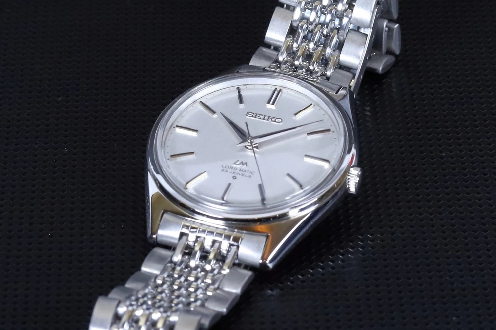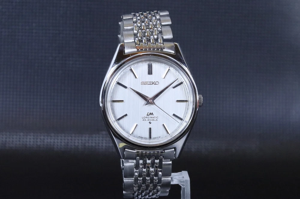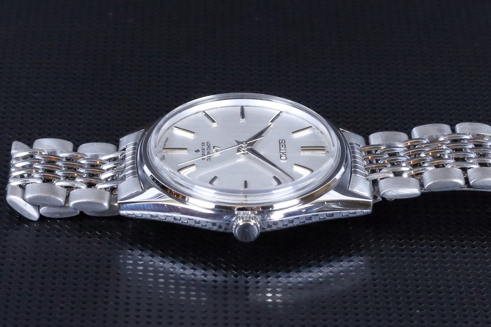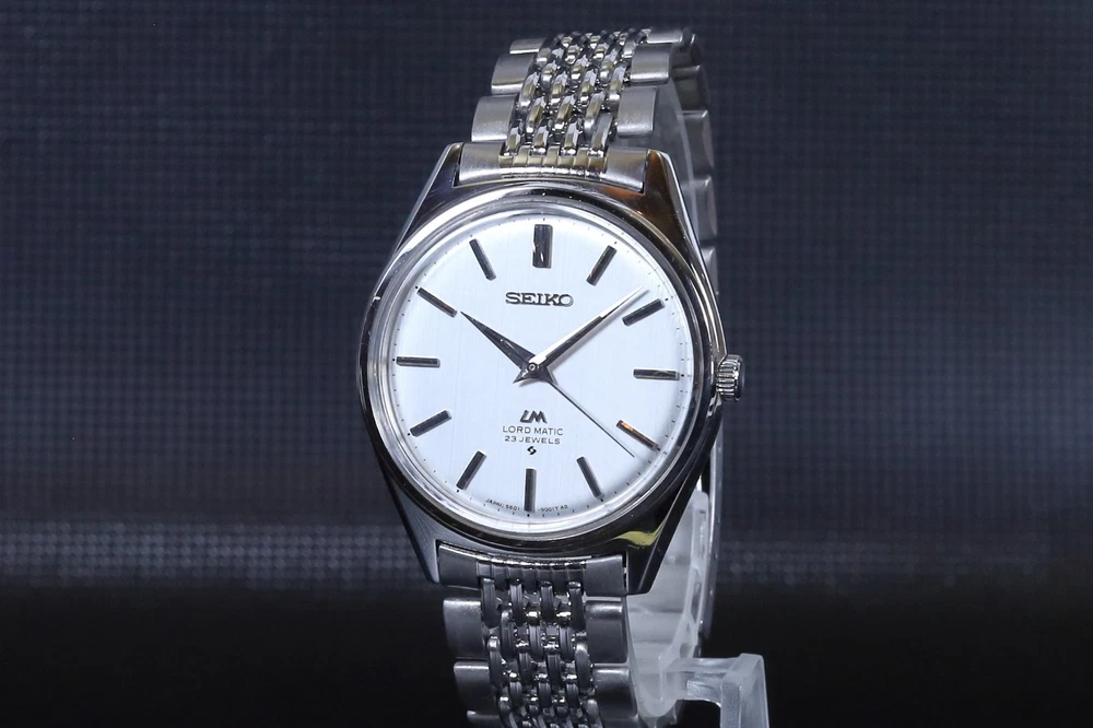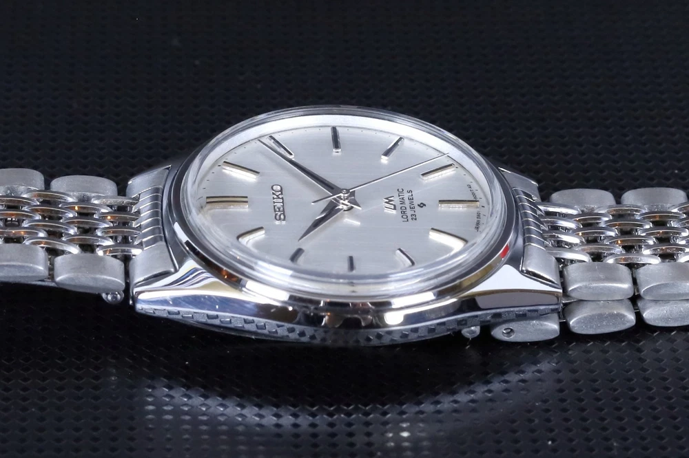 Number of Jewels:23 JewelsWith Papers:NoCase Size:35 mmLug Width:19mmDial Color:SilverDepartment:Unisex AdultsBezel Color:SilverWater Resistance:Not Water ResistantIndices:Stick IndexesStyle:Dress/FormalBand/Strap:BraceletType:WristwatchCustomized:NoUPC:Does Not ApplyCaseback:SnapModel:Seiko Lord MaticVintage:Yesgtin13:Does Not ApplyCase Color:SilverFeatures:12-Hour DialYear Manufactured:1970-1979Country of Origin:JapanBrand:SeikoReference Number:5601-9000Bezel Type:FixedBand Material:Stainless SteelCase Material:Stainless SteelWith Original Box/Packaging:NoBand Color:SilverBand Width:19 mmMovement:Mechanical (Automatic)Watch Shape:RoundDisplay:AnalogCase Finish:Polished