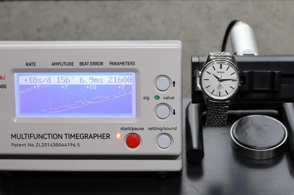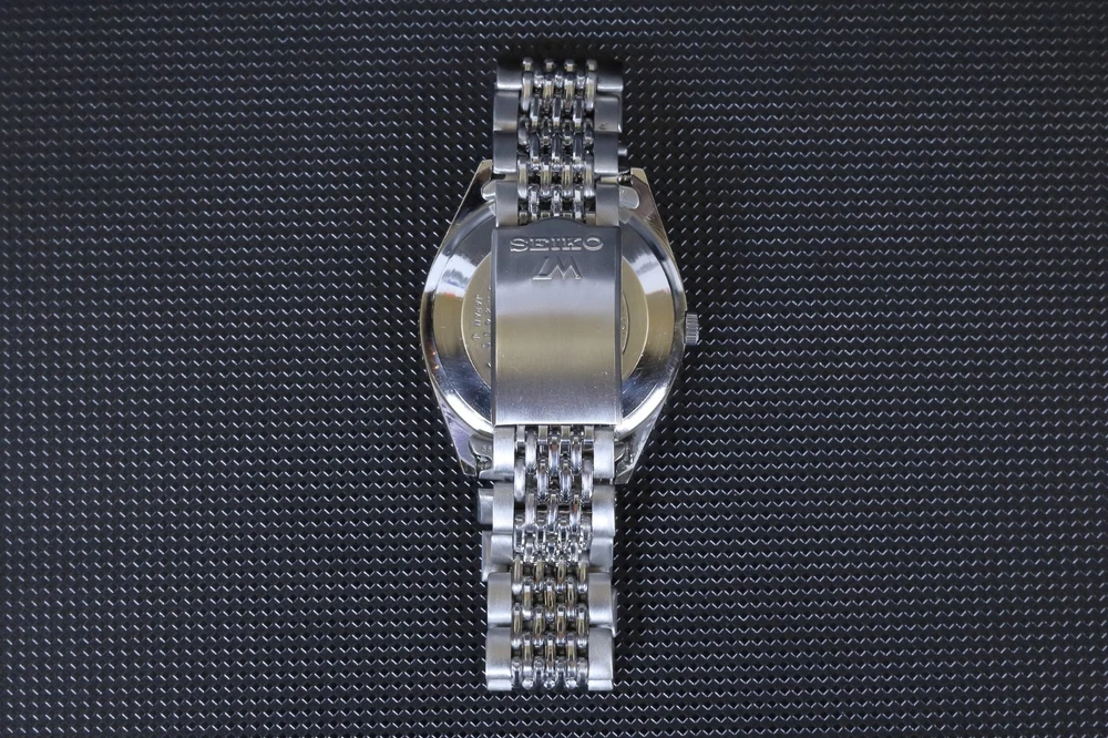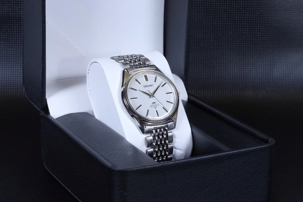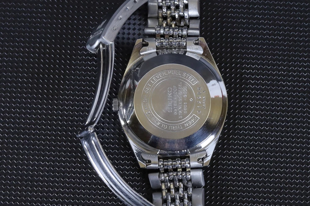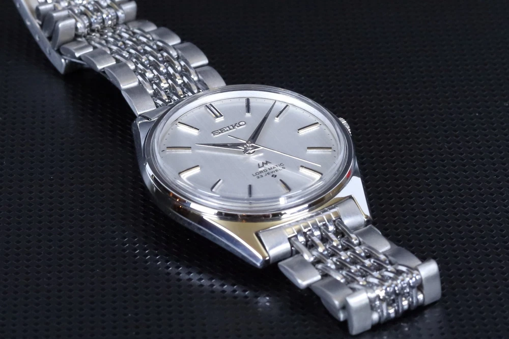 Number of Jewels:23 JewelsWith Papers:NoCase Size:35 mmLug Width:19mmDial Color:SilverDepartment:Unisex AdultsBezel Color:SilverWater Resistance:Not Water ResistantIndices:Stick IndexesStyle:Dress/FormalBand/Strap:BraceletType:WristwatchCustomized:NoUPC:Does Not ApplyCaseback:SnapModel:Seiko Lord MaticVintage:Yesgtin13:Does Not ApplyCase Color:SilverFeatures:12-Hour DialYear Manufactured:1970-1979Country of Origin:JapanBrand:SeikoReference Number:5601-9000Bezel Type:FixedBand Material:Stainless SteelCase Material:Stainless SteelWith Original Box/Packaging:NoBand Color:SilverBand Width:19 mmMovement:Mechanical (Automatic)Watch Shape:RoundDisplay:AnalogCase Finish:Polished