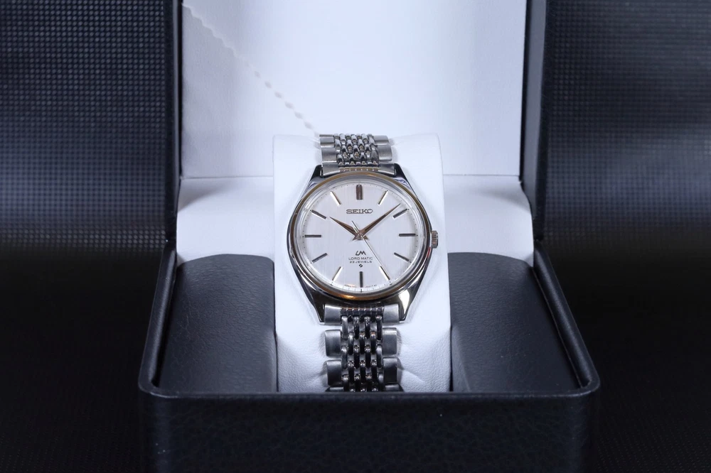 The Seiko Lord Matic 5601-9000 from the premium Lord Matic series of the 1970s combines refined design with everyday practicality. Featuring a slim stainless-steel case with sharp edges and elegant proportions, this classic timepiece is suitable for both business and casual wear. The silver dial with clean bar indices offers excellent legibility while maintaining a sophisticated and understated appearance. The watch is powered by Seiko’s reliable Cal. 5601 automatic movement, which supports both automatic and manual winding. Known for its durability and stable performance, the 56-series movement is highly regarded among vintage Seiko enthusiasts. A date display at the 3 o’clock position adds everyday convenience, making this watch both stylish and practical. -Function Fully functional. Automatic and manual winding operate correctly. Timegrapher measurements indicate an accuracy of approximately +15 seconds per day. -Exterior Case: Shows minor scratches and scuffs consistent with age, but no major dents or deep scratches. Overall in good vintage condition. Dial: Clean and well preserved; indices and hands remain in good condition. Crystal: Replaced with a new crystal and is in excellent condition with no visible wear. Case Back: Minor scratches and scuffs are present; engravings remain clear and legible. This watch was fully inspected prior to shipment and is currently running properly. Please note that vintage watches are not waterproof and should be kept away from moisture. -Brand: Seiko -Model: Lord Matic -Reference Number: 5601-9000 -Year of Manufacture: 1970s -Movement: Cal. 5601 Automatic -Jewels: 23 -Case Material: Stainless Steel -Case Size: Approx. 36mm (excluding crown) -Lug to Lug: Approx. 41mm -Case Thickness: Approx. 9.5mm -Lug Width: 18mm As this is a vintage watch, water resistance cannot be guaranteed. -Before Purchase All watches we sell are inspected and adjusted to ensure proper operation. Please note that this is a vintage, pre-owned watch, and future maintenance or servicing may be required. -Shipping & Delivery Please monitor the tracking information until the item arrives. If tracking does not update, please contact the carrier directly. Please inspect the item promptly upon delivery. -Import Duties & Taxes Import duties, VAT, and other taxes are handled by eBay where applicable. Any applicable import fees will be shown during checkout, and no additional payment will be required after purchase. -Payment, Shipping & Returns Payment, shipping, and return policies follow eBay’s official policies.