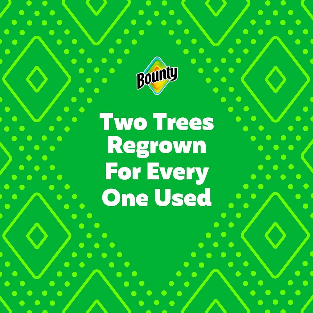 Pack contains 2 Triple Rolls of white Bounty Select-A-Size Paper Towels 2 Triple Rolls = 6 Regular Rolls Select-A-Size sheets help you customize how much to use for each task Picks up spills and messes quicker vs. leading ordinary brand More absorbent so you can use less vs. leading ordinary brand Can tackle everyday messes and tough projects The Quicker Picker Upper* *vs. leading ordinary brand Most Awarded Paper Towel based on online media awards for the past 8 years Bounty paper towels are 2x more absorbent, so you can clean up messes quicker and use less than the leading ordinary brand. Each sheet has a durable diamond texture to tackle anything from everyday spills to tough projects throughout your home. A variety of pack and rolls sizes are available, and going bigger means you change the roll less often* to always have bounty on hand. Buy in bulk choose from different sheet sizes based on what works best for your needs, including select-a-size and full-size. You can also change it up with our printed designs. *vs bounty regular roll.