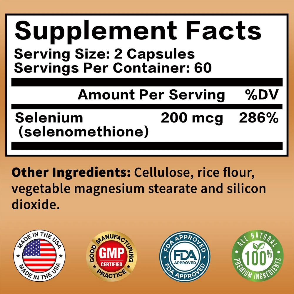 Effects: Thyroid, Heart and Immune System Support Ingredients: Selenium Directions: Take 2 capsules once daily after a meal. Shipping: Ships within 48 hours on working days. Shelf life: 2 years Description: Immune System & Metabolism Support: Selenium naturally supports immune system and prostate function. Selenium may also play a key role in metabolism in both men and women. Yeast Free Essential Micronutrient Selenium Amino Acid Complex: Selenium is a natural micronutrient that may play a vital role in many essential body functions. Superior Quality: Non-GMO, Gluten Free, Soy Free. Document