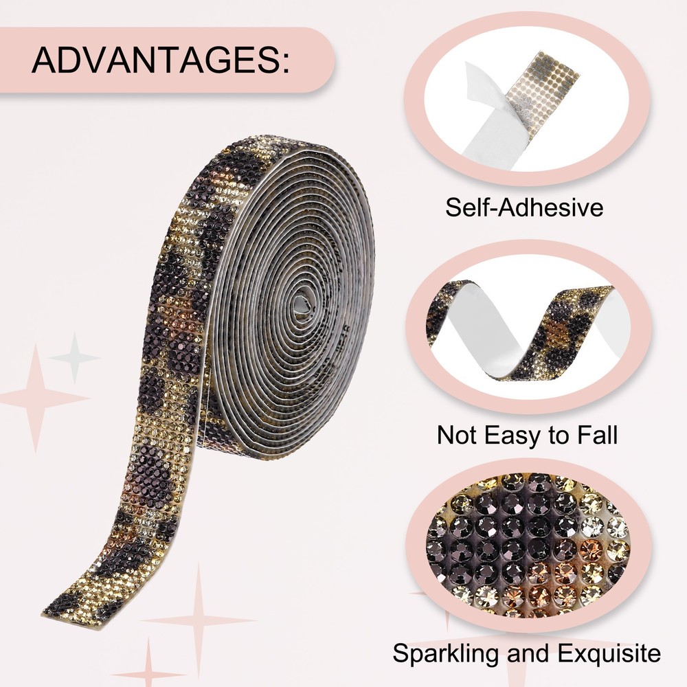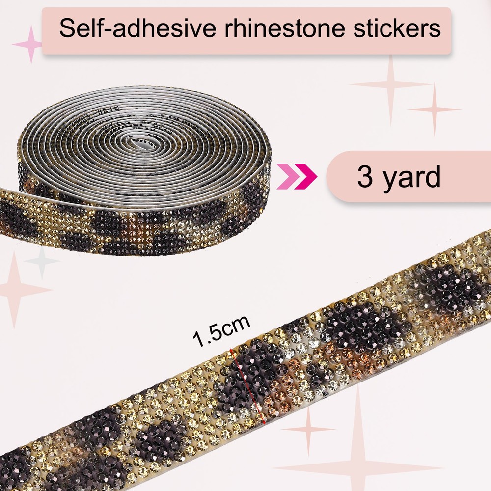 Self Adhesive Leopard Print Rhinestone Strips 3 Yards for Crafting