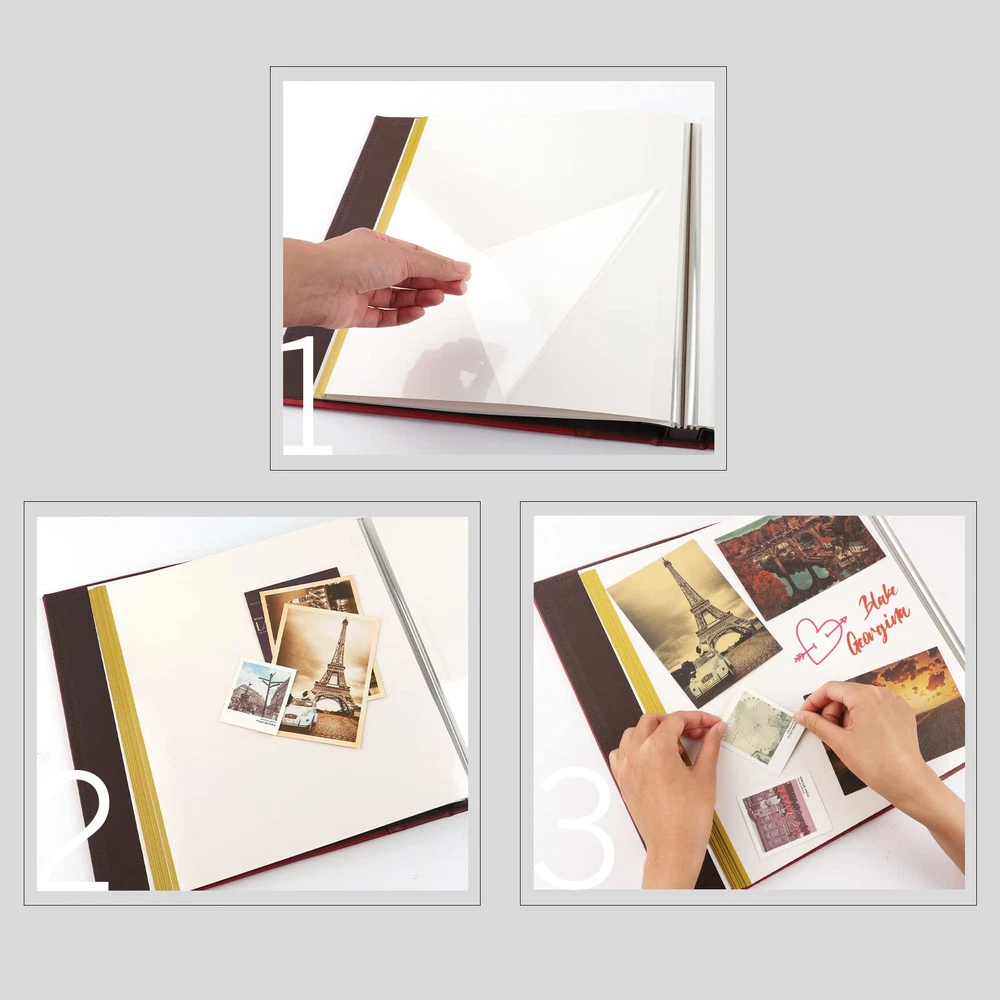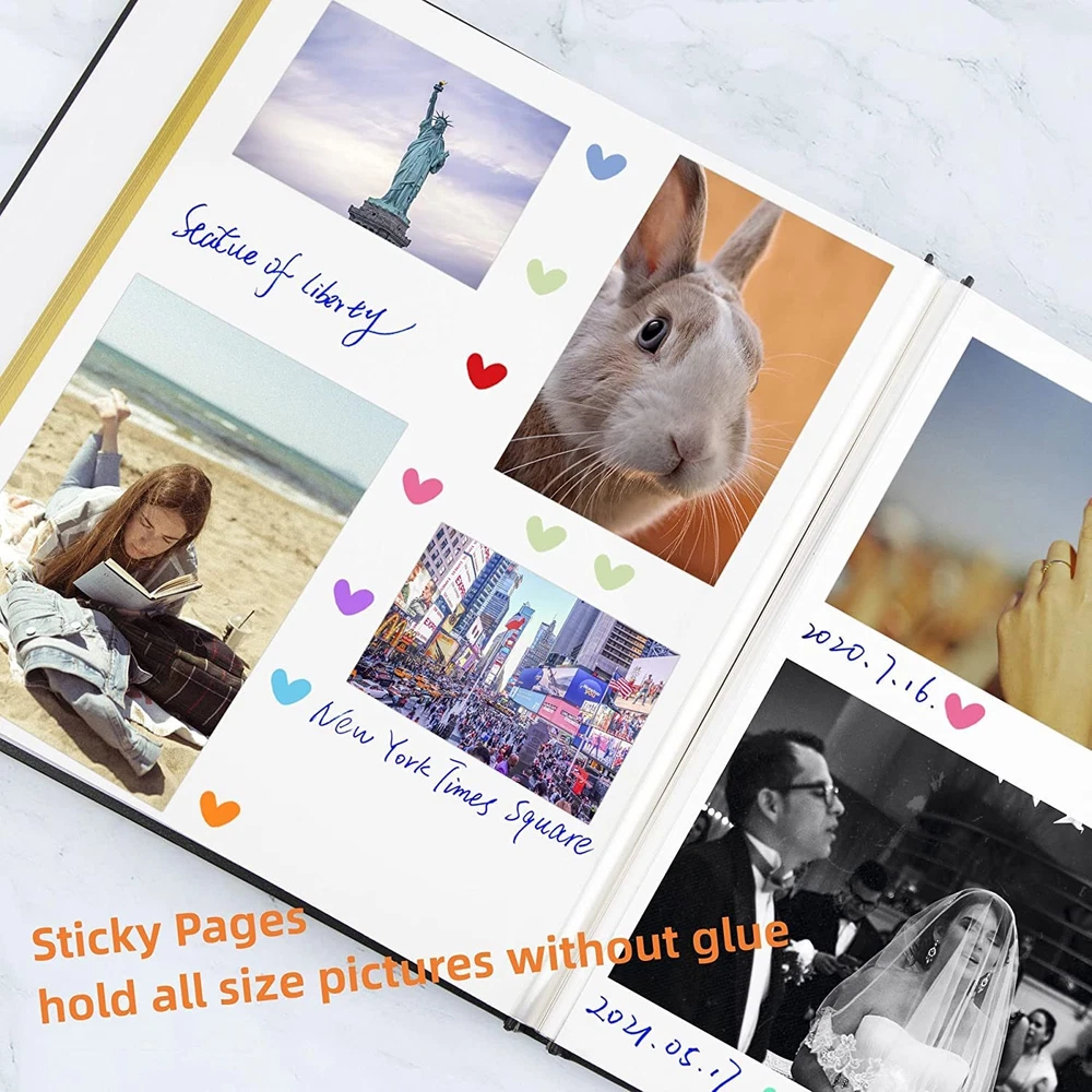 Suitable for 3x5,4x6,5x7,6x8,8x10 Photos and any tickets you want to keep. The album size is 11.4(L) x 10.6(W) inches, 20 sheets/40 pages. Could hold about 120 photos. Faux Leather cover looks beautiful and upscale. Keep your photos acid free, air free and dustproof. This scrapbook album is a great gift for wedding, baby shower,graduation, Christmas, Mother's Day, etc.