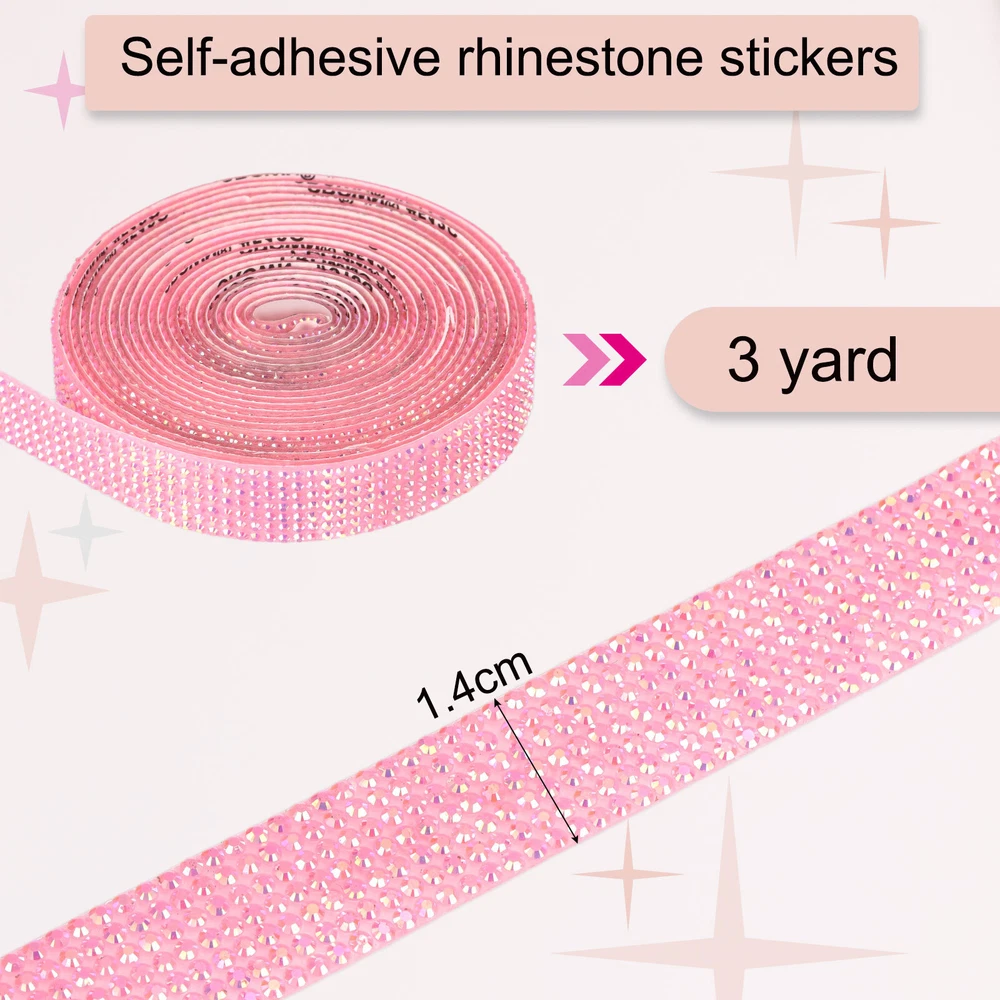 Self Adhesive Rhinestone Strips 3 Yards 0.55 Inch for Craft,Rose Red AB
